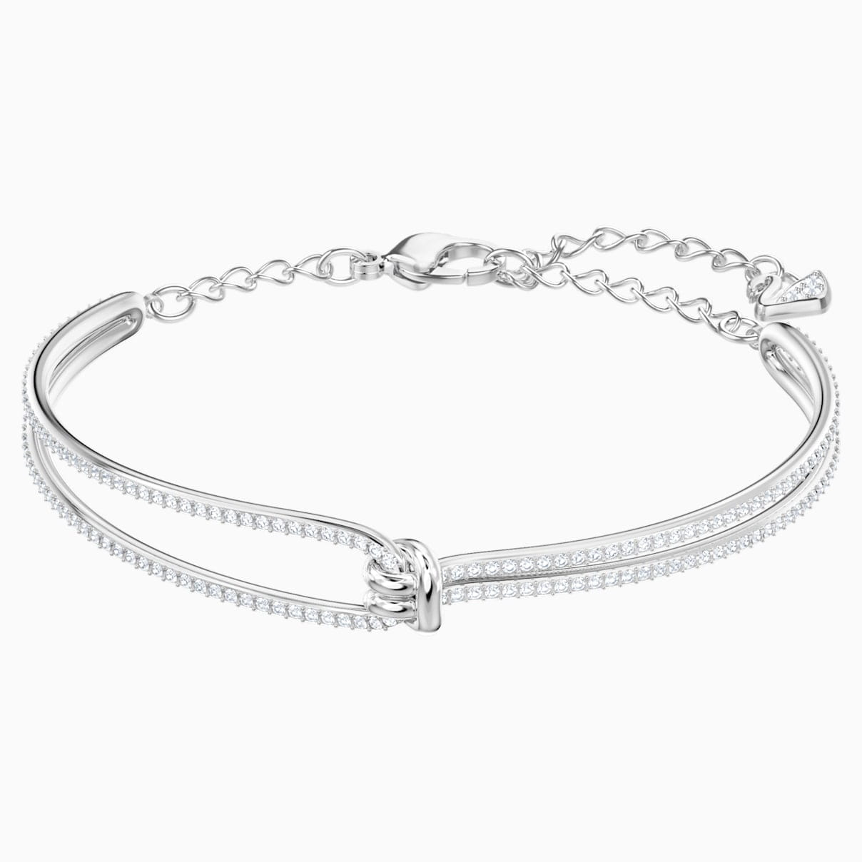 Daj wyraz swoim uczuciom i podaruj ukochanej osobie piękną bransoletkę. Ten popularny model ozdobiono nowoczesnym wzorem węzła symbolizującym wyjątkową więź pomiędzy dwojgiem ludzi. Połączenie kryształowej oprawy pavé i powłoki z rodu podkreśla modny i romantyczny design przepełniony blaskiem kryształów Swarovskiego.