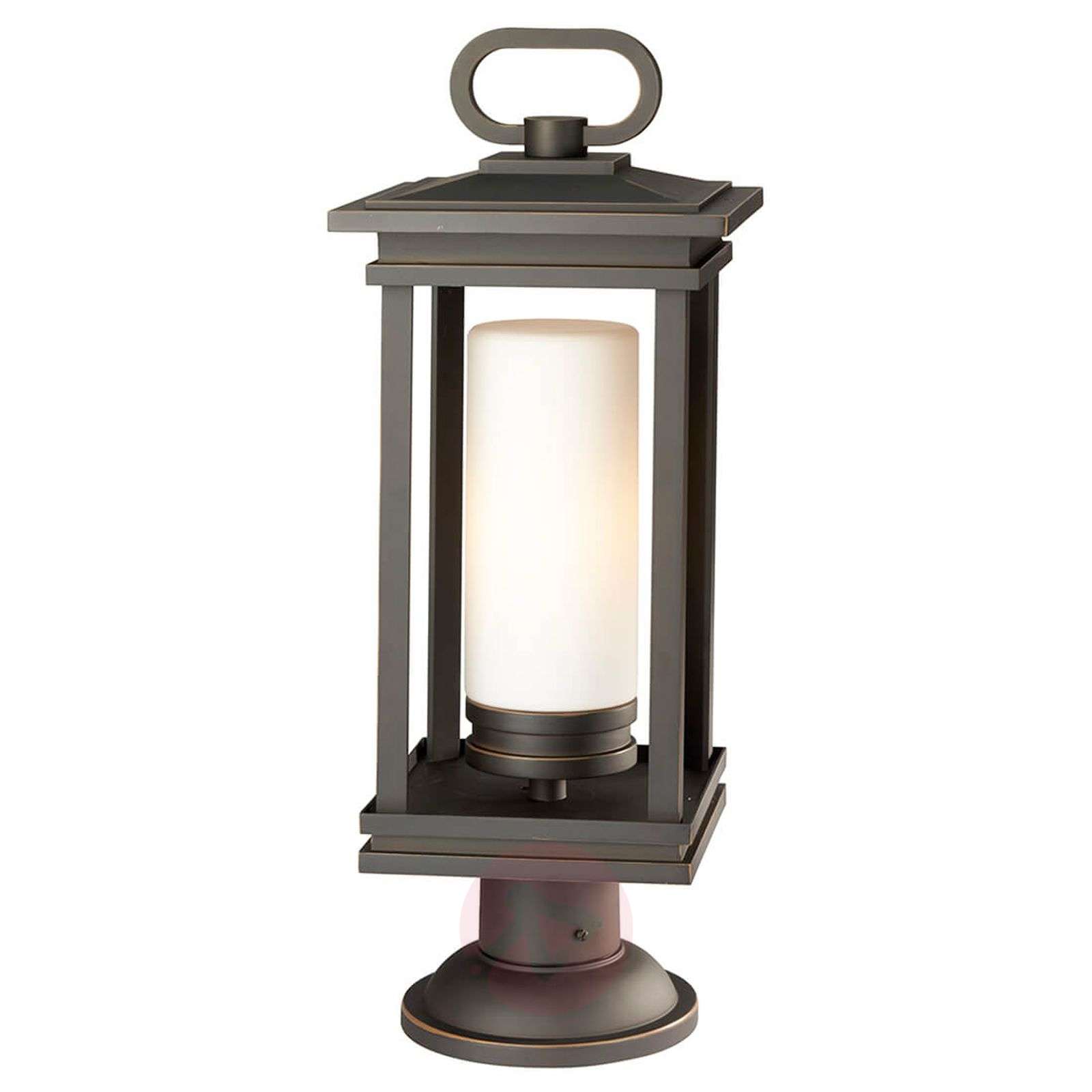 Lampa cokołowa South Hope – uniwersalna lampa kombinowana South Hope prezentuje się nam jako lampa cokołowa z przezroczystą strukturą, która dzięki kształtowi i kolorystyce (wykończenie w kolorze startego brązu) komponuje się z wieloma aranżacjami przestrzennymi na zewnątrz budynków. Wewnątrz kanciastej obudowy widoczny jest przypominający świetlówkę reflektor lampy, wykonany z wytrawianego szkła opalowego z wytrawionego szkła opalowego, który nadaje emitowanemu światłu ciepłą, nastrojową barwę. Stylowe źródło światła, które może być używane na zewnątrz na wiele różnych sposobów, na przykład jako element zapewniający oświetlenie ściany lub klatki schodowej. Klasa efektywności energetycznej: A++