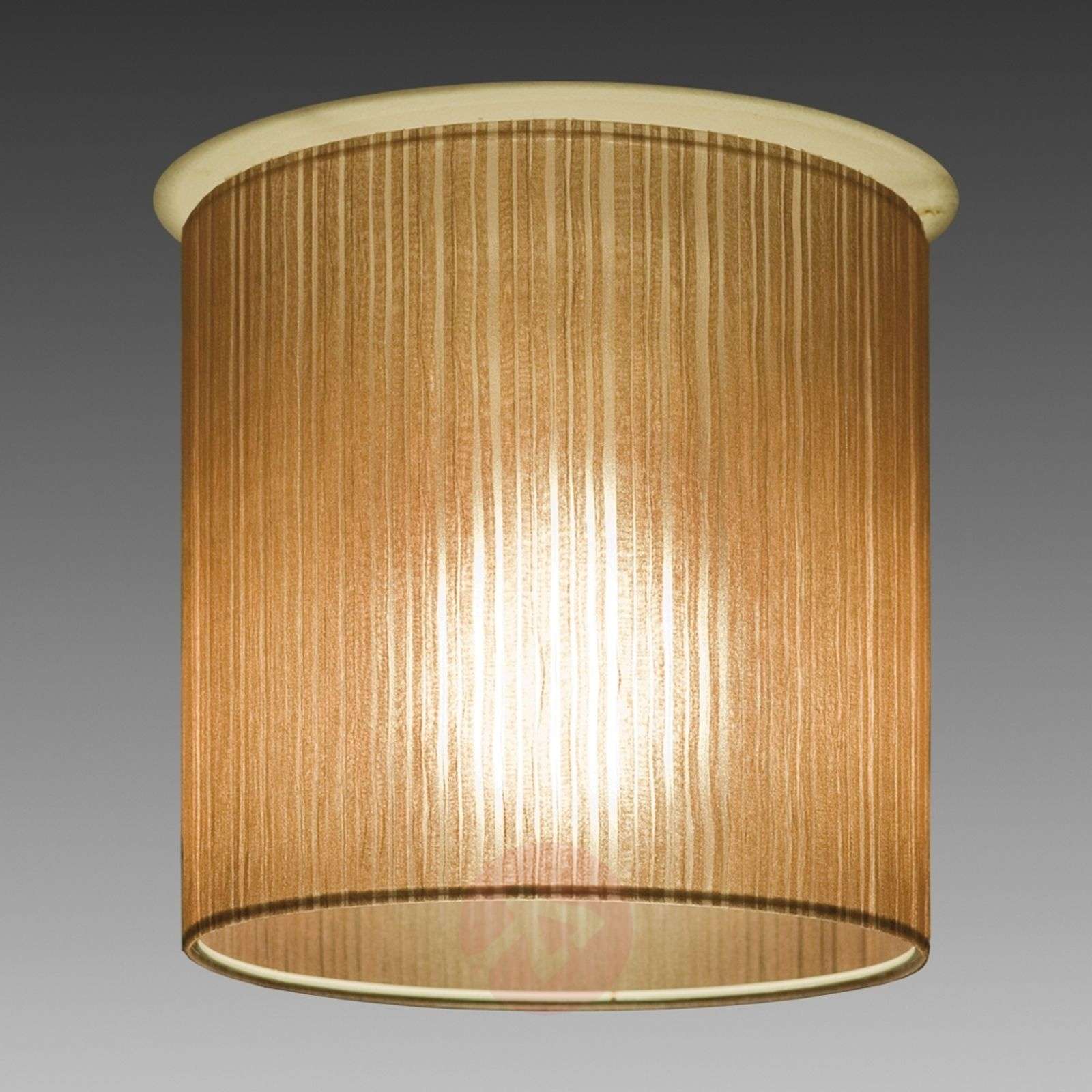 Stylowa lampa sufitowa Ganzo z wysokiej jakości abażurem z tkaniny organza Lekko połyskujący i przepuszczający światło abażur z organzy w brązowym kolorze nadaje lampie sufitowej Ganzo szczególny charakter. Dzięki niemu lampa tworzy nastrojowe i wyjątkowo ciekawe światło, które idealnie rozprasza wewnętrzny biały abażur. W korytarzu, sypialni lub w innych pomieszczeniach mieszkalnych - lampa sufitowa Ganzo urzeka harmonijnym światłem, wysokiej jakości materiałami i doskonale komponuje się z różnymi stylami aranżacji wnętrz. Klasa efektywności energetycznej: A++