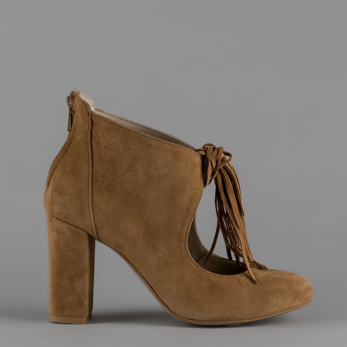 Jeśli szukasz oryginalnych botków na cieplejsze dni to ten model spełni Twoje oczekiwania. Stylowe frędzle w przedniej części buta oraz zamek na pięcie to elementy, które nadają charakteru temu modelowi. Dodatkowo wykonane z wysokiej jakości skóry zamszowej w uniwersalnym kolorze na stabilnym obcasie.