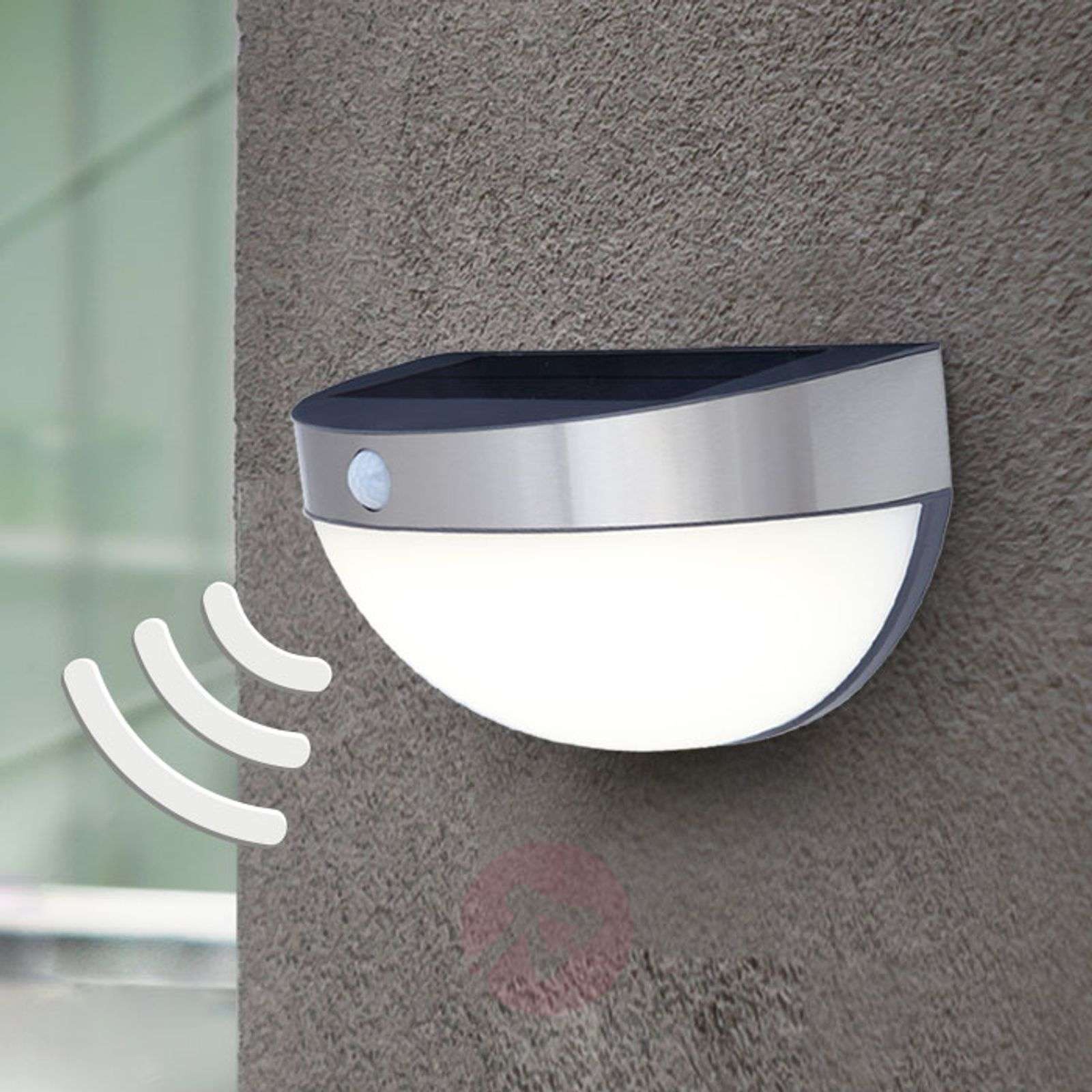 Praktyczna solarna lampa ścienna LED Bubble ze zintegrowanym czujnikiem Oświetlenie zewnętrzne bez prądu? Czemu nie – umożliwia to ścienna lampa solarna LED Bubble. Jest tak, gdyż tę lampę o półokrągłej formie wyposażono w polikrystaliczny panel słoneczny, który ładuje akumulator w ciągu dnia i pozwala diodom LED świecić się w ciemności. Wbudowany w pierścień ze stali nierdzewnej czujnik ruchu PIR automatycznie włącza światło lampy. Czujnik rozpoznaje ruch z odległości do 12 metrów i ma kąt wykrywania 120°. - regulowany czas świecenia (przy całkowicie naładowanym akumulatorze: ok. 3 godz.) - polikrystaliczny panel słoneczny, 2 200 mAh 3,7 V, akumulator litowo-jonowy - praca całkowicie niezależna od prądu sieciowego – brak kosztów eksploatacji - brak okablowania – prosta instalacja - obudowa odporna na działanie warunków atmosferycznych: IP44 - odporny na uderzenia dyfuzor poliwęglanowy Klasa efektywności energetycznej: A+