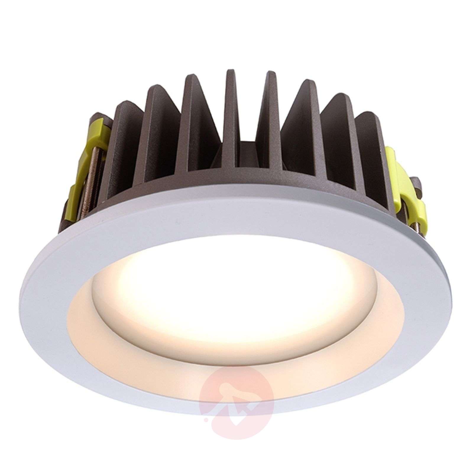 Sufitowa oprawa wpuszczana LED COB210, 37 watów Okrągła sufitowa oprawa wpuszczana LED COB210 ma średnicę 23 cm i nadaje się do zapewniania oświetlania ogólnego w mniejszych pomieszczeniach. W zależności od potrzeb można tu zastosować osłonę z szyby wykonanej ze szkła akrylowego. Możemy wybrać szybę przezroczystą lub satynowaną. Obie szyby są zawarte w zestawie. Wymagany zasilacz sieciowy LED należy zamawiać oddzielnie w dziale „Akcesoria dodatkowe”. - kąt świecenia: 60° – CRI 90 Klasa efektywności energetycznej: A+
