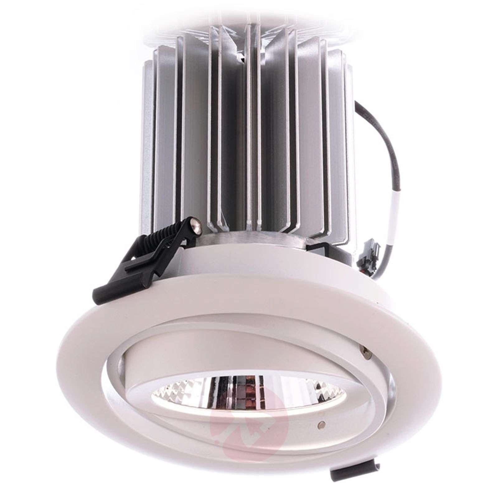 COB 23 – okrągły reflektor wpuszczany LED do pomieszczeń komercyjnych i prywatnych Ten reflektor wpuszczany LED COB 23 charakteryzuje się bardzo dobrym współczynnikiem oddawania barw Ra 90, co czyni go szczególnie przydatnym do oświetlania sklepów. W spocie wpuszczanym LED, wykonanym z aluminium, zainstalowano zasilacz sieciowy LED firmy Osram, dzięki czemu możliwe jest bezpośrednie podłączenie lampy do sieci. - kąt padania światła 40° - spot można obracać i odchylać o 30° Klasa efektywności energetycznej: A+