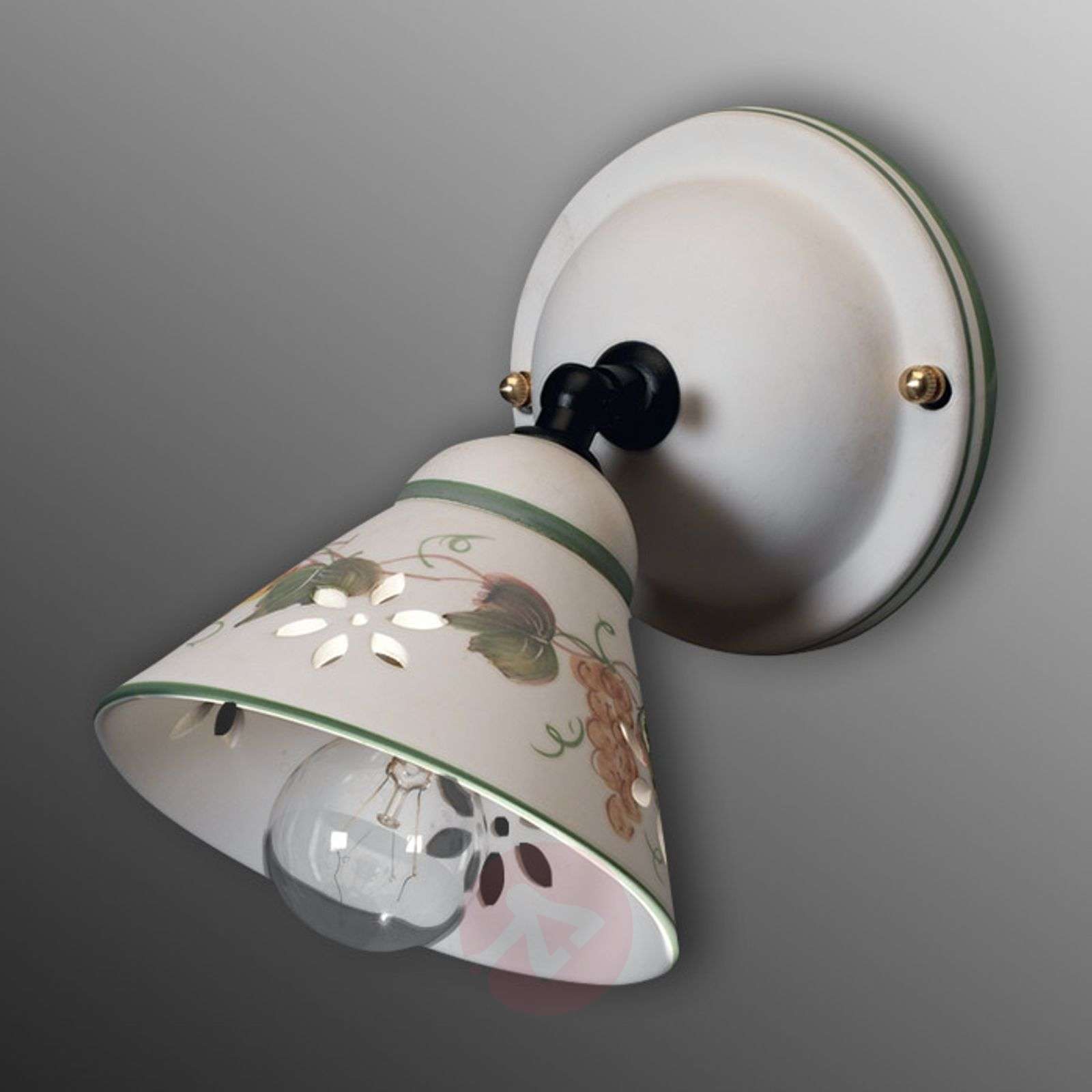 Jednopunktowa lampa ścienna VIGNA z ceramiki Lampa ścienna VIGNA zachwyca niezwykłym wyglądem: Jej mały klosz jest utrzymany w białym kolorze i ozdobiony nie tylko motywem winorośli, ale również ażurowym wzorem w kwiaty. W efekcie powstaje ciekawa gra światła i cienia oraz czarujące akcenty. Klasa efektywności energetycznej: A++