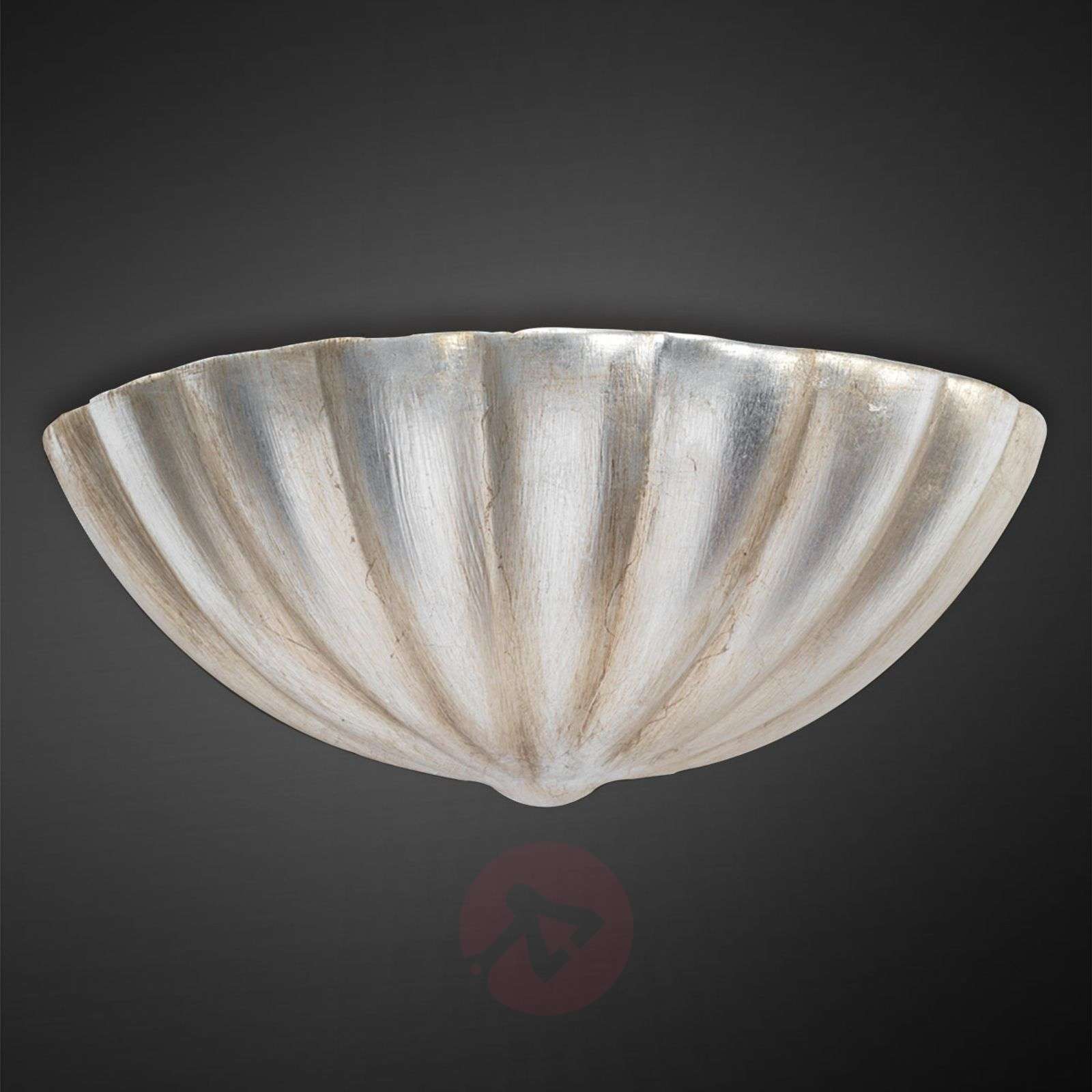 Ceramiczna lampa ścienna VIOLETTA – lśniący blask w postaci srebra płatkowego Ceramiczna lampa ścienna VIOLETTA stwarza wiele możliwości aranżacyjnych. Posiada kształt muszli pokrytej srebrem płatkowym, które dodaje jej blasku podkreślonego skierowanym w górę światłem. Lampa doskonale odnajdzie się we wnętrzach urządzonych w stylu marynistycznym. Klasa efektywności energetycznej: A++