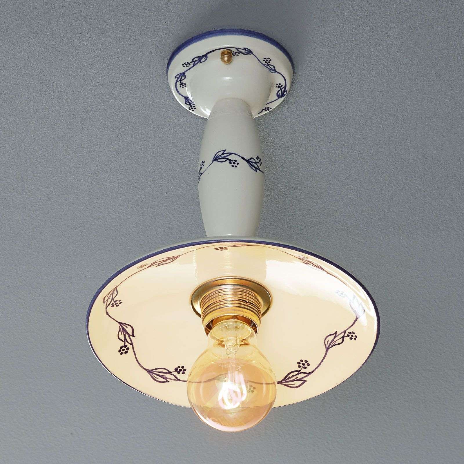 Lampa sufitowa LINEA RIBES z subtelnym niebieskim wzorem Lampa sufitowa LINEA RIBES z ceramiki to wyjątkowa dekoracja do każdego wnętrza. Jest utrzymana w stylu dworkowo-rustykalnymi i zapewni przyjemne, jasne światło, tworząc w pomieszczeniu przytulną atmosferę. LINEA RIBES została dodatkowo ozdobiona drobnym, niebieskim wzorem. Klasa efektywności energetycznej: A++
