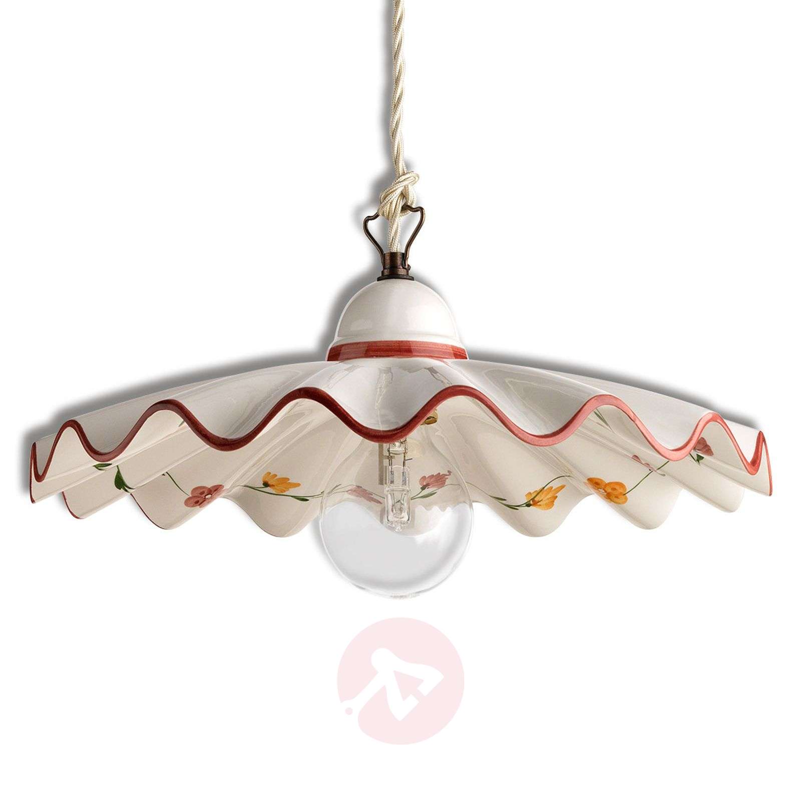 Jednopunktowa ceramiczna lampa wisząca AMETISTA z łańcuchowym zawieszeniem AMETISTA to wspaniała dekoracja do wnętrz urządzonych w stylu dworkowo-rustykalnym. Uroczy kwiatowy wzór po wewnętrznej stronie klosza nadaje całości lekkości i subtelności i wraz z czarnym łańcuchowym zawieszeniem z żelaza tworzy ciekawy kontrast. Szeroki klosz daje bezpośrednie światło, dzięki czemu AMETISTA zapewni ogólne oświetlenie wnętrza, na przykład w salonie lub korytarzu. Klasa efektywności energetycznej: A++