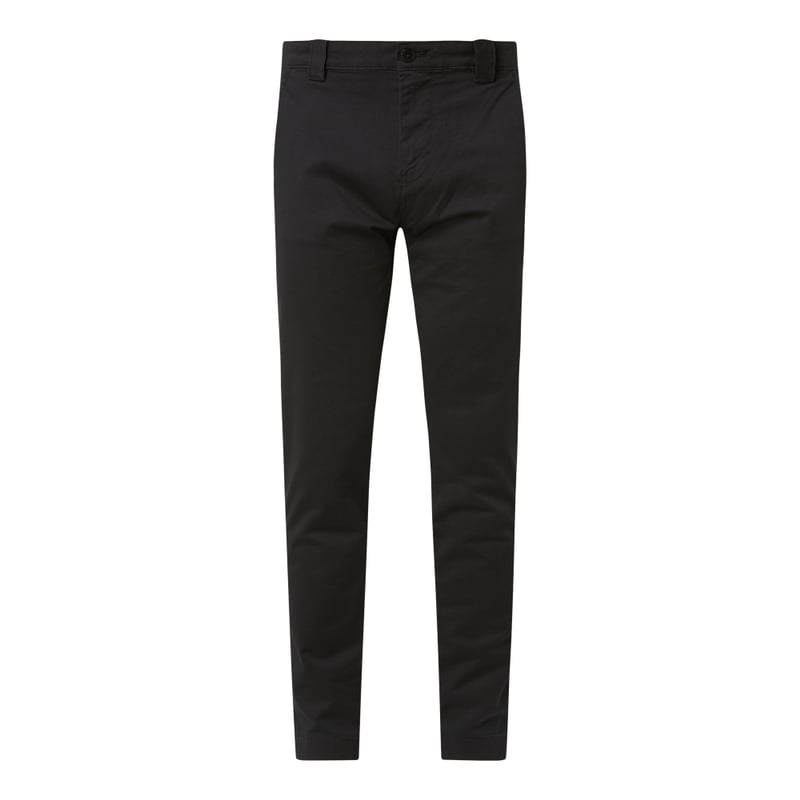 Chinosy męskie Tommy Jeans , Mieszanka bawełny i elastanu (‘Better Cotton Initiative’), Krój slim fit , Diagonal, Zapięcie na guzik i zamek błyskawiczny , Wpuszczane kieszenie w stylu francuskim , Kieszonka na monety, Kieszenie tylne z wypustką , Naszywka z logo , Długość wewnętrzna nogawki w rozmiarze 32/32: 81,5 cm , Szerokość w pasie w rozmiarze 32/32: 88 cm