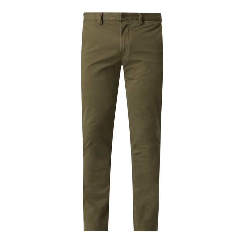 Chinosy męskie Polo Ralph Lauren, Mieszanka bawełny i elastanu, Krój slim fit, Diagonal, Zapięcie na guzik i zamek błyskawiczny, Wpuszczane kieszenie w stylu francuskim, Tylne kieszenie z wypustką zapinane na guzik, Długość wewnętrzna nogawki w rozmiarze 32/32: 79 cm, Szerokość w pasie w rozmiarze 32/32: 84 cm