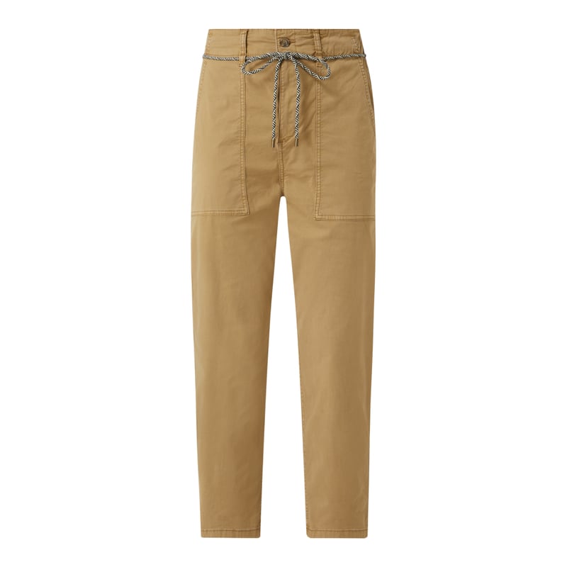 Chinosy damskie Esprit, Czysta bawełna pima, Krój krótki , Wiązany pasek, Elastyczny pas, Zapięcie na guzik i zamek błyskawiczny , Wpuszczane kieszenie, Ozdobne wypustki z tyłu, Długość wewnętrzna nogawki w rozmiarze 36: 63,5 cm