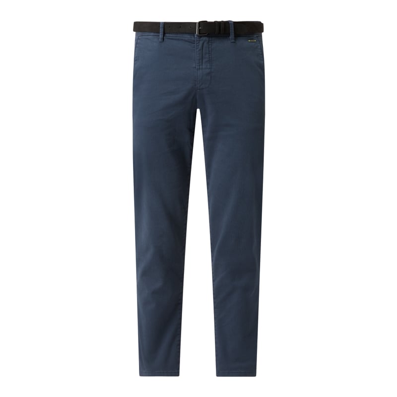 Chinosy męskie LERROS, Mieszanka bawełny i elastanu, Wąska nogawka , Delikatny tkany wzór, Zapięcie na guzik i zamek błyskawiczny, Wpuszczane kieszenie w stylu francuskim, Lamowane kieszenie z tyłu zapinane na guzik, Z paskiem ze sprzączką, Długość wewnętrzna nogawki w rozmiarze 32/32: 78 cm, Szerokość w pasie w rozmiarze 32/32: 80 cm