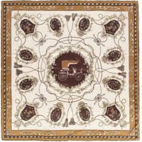 Chusta damskaWielobarwna chustadamska wykonana zeszlachetnego jedwabiuoznaczonego znakiem najwyższej jakości King Silk. Dodatek zachwyca dopracowanym designem. Brzegi zostały wykończoneniezwykle pracochłonną techniką ręcznego rolowania. Print na chuście okraszony złotym odcieniem zdobi oba warianty kolorystyczne, w których występuje model.Nasza rada: chusta urozmaici nawet najprostsze stylizacje i doda im szykownego blasku. wykonana w całości zjedwabiu; oznaczona znakiem najwyższej jakości King Silk; wymiary: 111 cm x 106 cm.