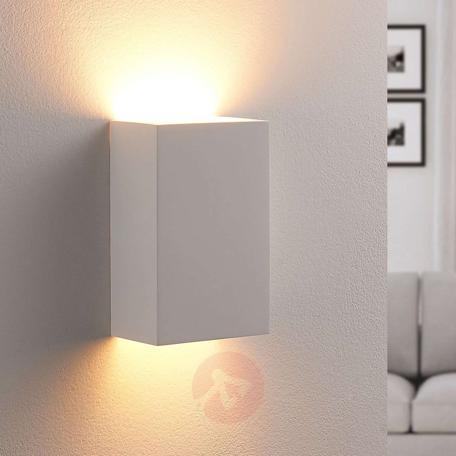 Kinkiet LED Colja, wykonany z białego gipsu Colja jest dostarczana w zestawie z żarówką LED G9, oferującą możliwość ściemniania. Ma również dobrą efektywność energetyczną i zużywa mało energii elektrycznej. Obudowa tego kinkietu LED wykonana jest z białego gipsu i ma ponadczasowe, kanciaste kształty. Jeśli chcesz dostosować wygląd lampy do swoich upodobań, możesz pomalować ten kinkiet LED na wybrany kolor lub nawet opatrzyć go niepowtarzalnym motywem. Klasa efektywności energetycznej: A+