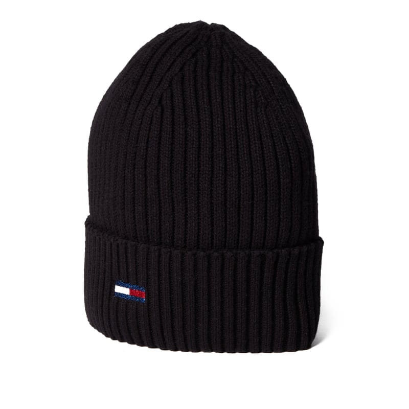 Czapka beanie damska Tommy Jeans, Czysta bawełna ekologiczna, Kolory uni, Gruby ścieg, Wyhaftowane logo