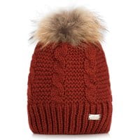 Czapka z pomponemCzapka damskaze splotemw warkocz wykonana z gęstej, przyjaznej dla skórytkaniny akrylowej, która łatwo dopasuje się do kształtu głowy. To ciepłe nakrycie będzie stanowiło skuteczną ochronę przed zimnem w czasie niepogody. Umieszczony na czubku pompon z królika podkreśla klasyczny kształt modelu. Uniwersalna kolorystyka czapki sprawdzi się zarówno w monochromatycznych kompletach, jak i w zestawieniu z innymi barwami. Ciekawy wzór dzianiny perfecyjnie podkreśli charakter wielu jesienno-zimowych stylizacji. wykonana z akrylu; pompon z naturalnego futra; przybliżona wysokość: 21 cm.