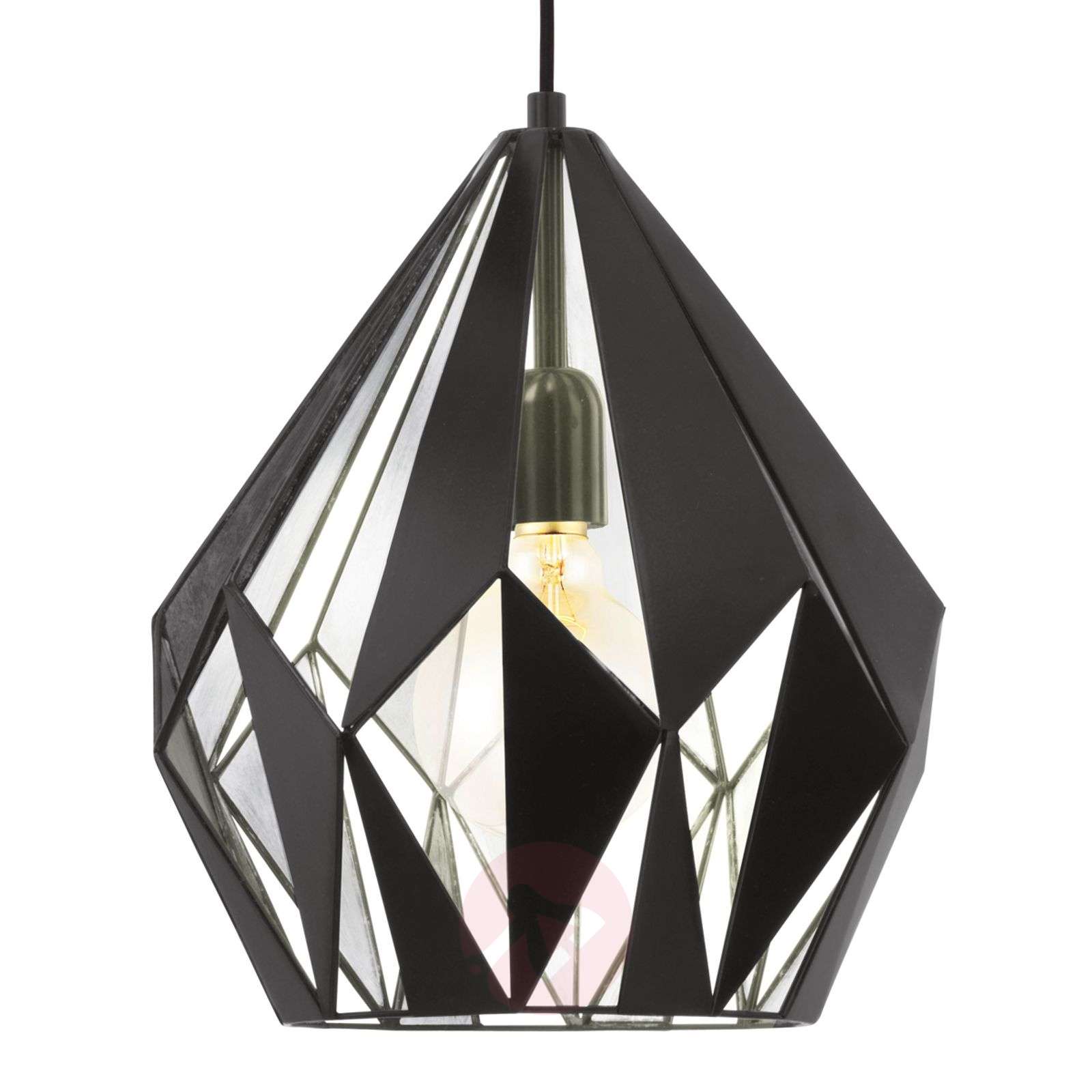 Lampa wisząca Carlton z ekstrawaganckim czarno-srebrnym kloszem Lampa wisząca Carlton zwodzi swym wyglądem, ponieważ stalowy klosz przypomina mieniący się dwoma kolorami kamień szlachetny. Ta atrakcyjna lampa stanowi odpowiednie samodzielne oświetlenie do wnętrz urządzonych w stylu vintage. Klasa efektywności energetycznej: A++