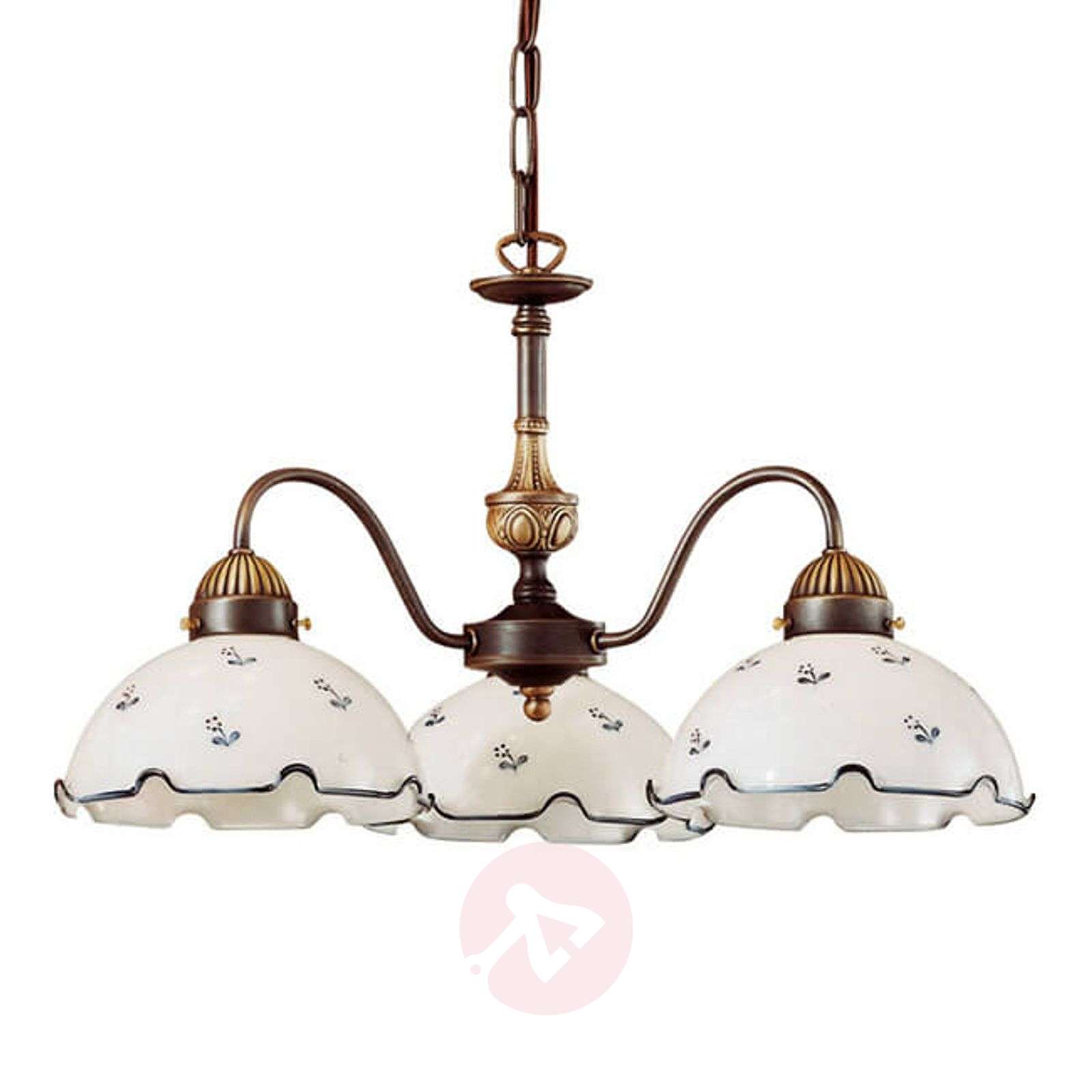Rustykalna lampa wisząca Nonna z dekoracyjnymi kloszami wysokiej jakości. Ta lampa wisząca z rustykalnej serii Nonna firmy Kolarz zachwyca drobnymi, starannie dopracowanymi, metalowymi elementami w kolorze postarzanego mosiądzu, które mają bardzo gustowny wygląd. Klosze lampy zostały wykonane w kunsztowny sposób i zaopatrzone w czarowną dekorację. Lampa wisząca Nonna zapewnia harmonijne, nastrojowe oświetlenie i może być interpretowana jako rustykalny element wyposażenia wnętrz. Można ją zamontować na wysokości od 50 do 95 cm. Klasa efektywności energetycznej: A++