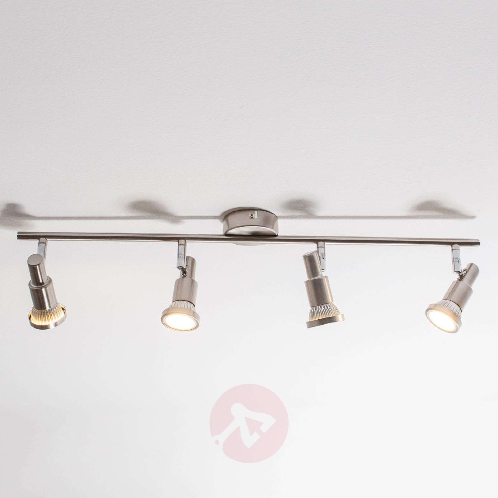 Lampa sufitowa LED ARON z niklowaną matową powierzchnią i oprawką GU10 Lampa sufitowa LED ARON łączy w sobie nowoczesne i ponadczasowe elementy, które razem tworzą harmonijną całość i nadają jej uniwersalny charakter, co pozwala na wszechstronne zastosowanie lampy. Lampa została wyposażona w żarówki LED z trzonkiem GU10, które przy temperaturze barwowej 3 000 kelwinów dają ciepłe białe światło szczególnie sprzyjające relaksowi. Okres przydatności jednej żarówki wynosi 30 000 godzin, dlatego nie jest konieczna jej częsta wymiana. Cechy żarówek z trzonkiem GU10 (w zestawie): - niski stopień zużycia energii, energooszczędność aż do 80% - jednolite oświetlenie dzięki dużemu kątowi rozsyłania światła 90° - bardzo długi okres użytkowania do 30 000 godzin - odporna na wstrząsy - żarówka bez rtęci - czynnik wydajności: 0,5 - bez możliwości ściemniania Klasa efektywności energetycznej: A+