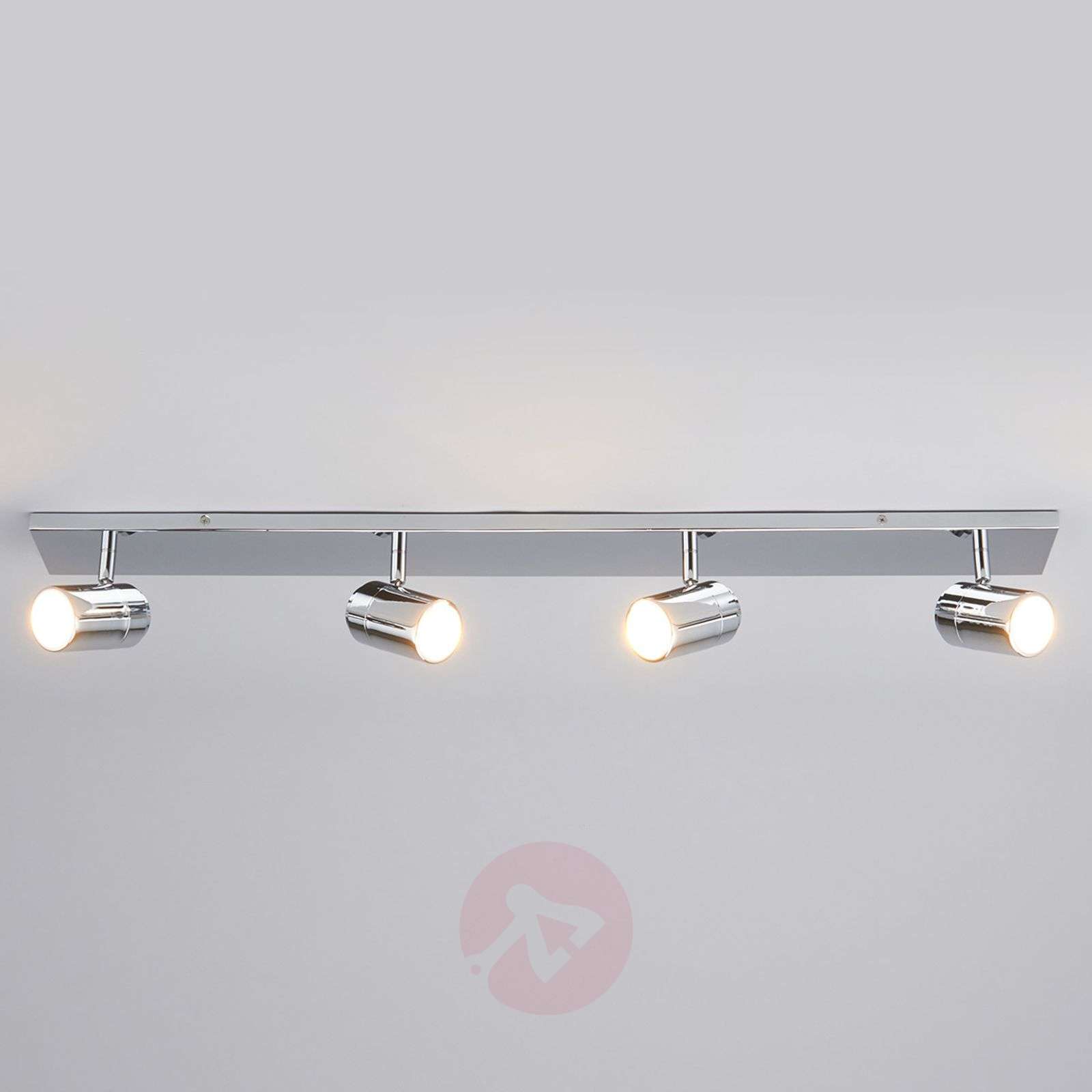 Lampa sufitowa Dejan ze stopniem ochrony IP44 Lampa sufitowa Dejan nadaje się nie tylko do salonu, ale również i korytarza. Lampa posiada stopień ochrony IP44, dlatego bez problemu nadaje się do stosowania w pomieszczeniach wilgotnych. W łazience nie może zabraknąć jasnego światła. Dlatego czteropunktowa lampa Dejan z regulowanymi spotami to doskonały wybór. Ze względu na błyszczącą chromowaną powierzchnię Dejan wprowadzi do wnętrza nieco blasku. Klasa efektywności energetycznej: A++