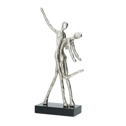 Stylowa dekoracja przedstawiająca tańczącą parę. Minimalistyczna, smukła w formie i elegancka ozdoba domu. Metalowy odlew osadzono na prostokątnej, czarnej podstawie. Statuetka przypadnie do gustu miłośnikom sztuki i dobrego stylu. Oryginalny pomysł na dekorację w gabinecie, biurze czy salonie.