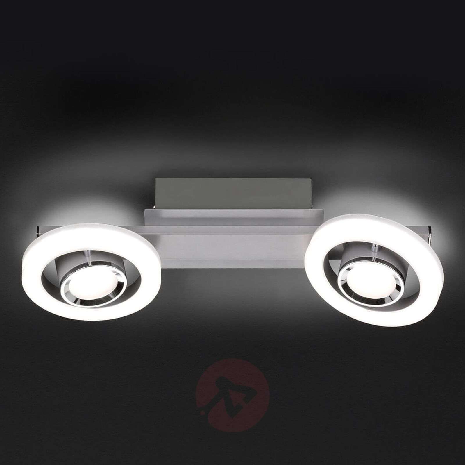 Ściemniana lampa sufitowa LED Detroit w nowoczesnym stylu Dwa regulowane pierścienie świetlne oraz srebrna podłużna podsufitka – tak prezentuje się nowoczesna i zarazem ponadczasowa lampa sufitowa LED Detroit. Jej uniwersalny design można łączyć z różnymi koncepcjami wyposażenia lub kolorystyki. Dodatkową zaletą jest zintegrowana funkcja ściemniania, która umożliwia regulację jasności w trzech stopniach za pomocą zwykłego przełącznika ściennego. Wystarczy kilkukrotnie nacisnąć przełącznik, by zmniejszyć jasność diod LED o barwie ciepłej bieli. Klasa efektywności energetycznej: A+