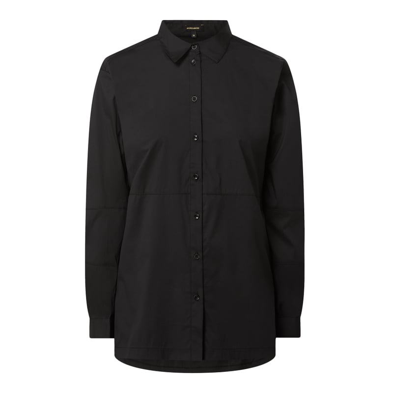 Długa bluzka damska MORE & MORE, Mieszanka bawełny z dodatkiem streczu , Luźny krój , Wykładany kołnierz , Nakładana listwa guzikowa , Mankiety zapinane na 1 guzik , Szwy działowe , Zakładka z tyłu , Długość tyłu w rozmiarze 36: 75 cm, Długość rękawa w rozmiarze 36: 57 cm
