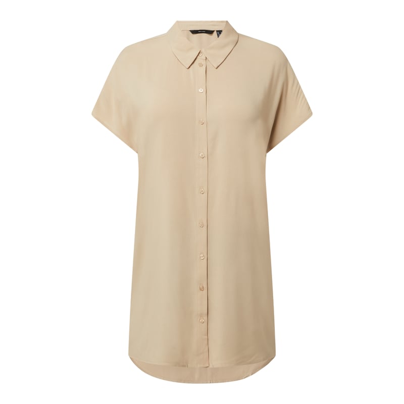 Długa bluzka damska VERO MODA, Czysta wiskoza , Luźny krój , Wykładany kołnierz, Listwa guzikowa , Krótkie, ukośnie skrojone rękawy , Długość tyłu w rozmiarze S: 93 cm