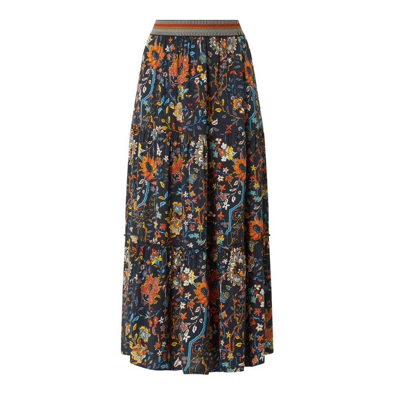 Długa spódnica damska Jake*s Casual, Czysta wiskoza (LENZING™ ECOVERO™) , Krój rozkloszowany, Stopniowanie, Wzór na całej powierzchni, Elastyczny pas , Długość całkowita w rozmiarze 36: 100 cm