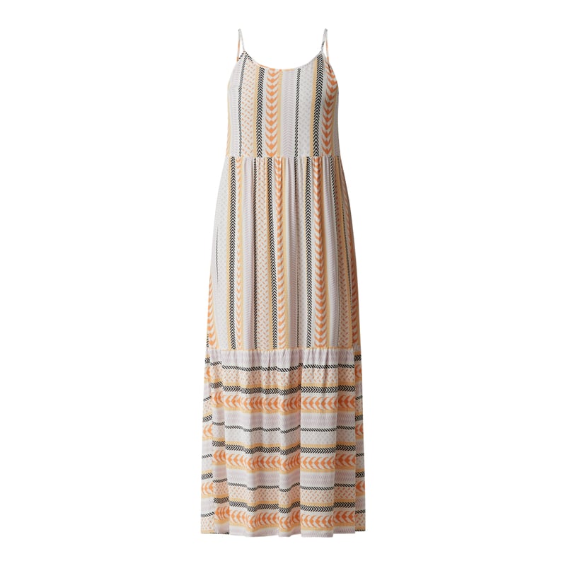 Długa sukienka damska MONTEGO, Czysta wiskoza, Krój rozkloszowany, Wzór etno, Okrągły dekolt, Cienkie ramiączka, Odznaczająca się spódnica, Długość tyłu w rozmiarze 36: 120 cm
