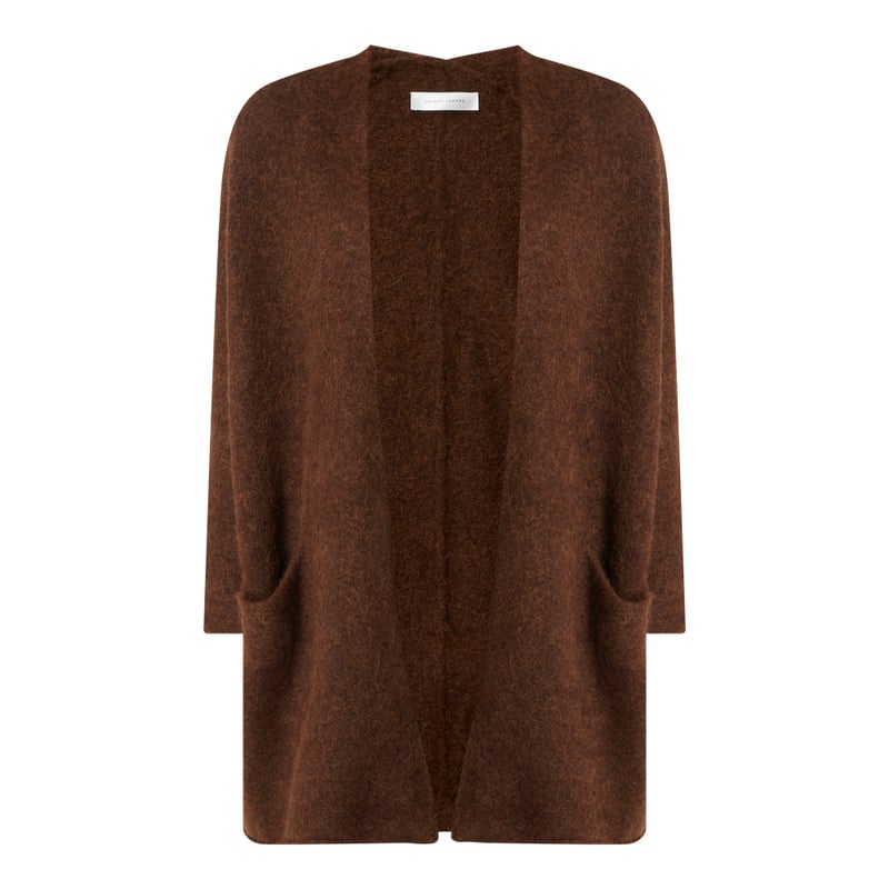 Długi kardigan damski Joseph Janard, Mieszanka wełny z dodatkiem wełny z alpaki i streczu, Luźny krój , Przód bez zapięcia , Ukośnie skrojone rękawy o długości 7/8 , Wpuszczane kieszenie, Zrolowany dół, Długość tyłu w rozmiarze 36: 85 cm