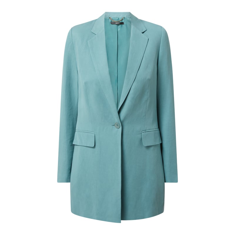 Długi żakiet damski Esprit Collection, Mieszanka lyocellu i lnu, Taliowany krój, Kołnierz z połami, Zapięcie na guzik, Kieszenie z wypustkami i patką, Rozcięcie z tyłu, Długość tyłu w rozmiarze 36: 82 cm, Szerokość ramion w rozmiarze 36: 37 cm, Długość rękawa w rozmiarze 36: 64 cm