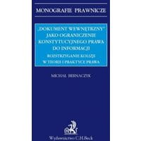 Najbardziej kontrowersyjnym wątkiem dostępu do informacji publicznej w Polsce jest rosnąca liczba orzeczeń wojewódzkich sądów administracyjnych oraz Naczelnego Sądu Administracyjnego umożliwiających odmowę dostępu do tzw. „dokumentów wewnętrznych”. Pojęcie budzi skrajne oceny: od zarzutów niekonstytucyjnego ograniczania dostępu do informacji o działalności państwa i jego funkcjonariuszy aż po bezkrytyczną aprobatę urzędników domagających się ochrony procesu decyzyjnego, planów, strategii, notatek, nagrań i innych szeroko rozumianych wewnętrznych danych urzędu. Monografia jest pierwszą w Polsce tak głęboką i krytyczną analizą tytułowego pojęcia, uwzględniającą nakaz wykładni prawa zgodnie z Konstytucją RP, teorię rozstrzygania konfliktu zasad, zasadę proporcjonalności oraz dorobek orzeczniczy Trybunału Konstytucyjnego. Będzie przydatnym źródłem wiedzy dla praktyków i teoretyków prawa zajmujących się jawnością życia publicznego lub ochroną informacji: sędziów, adwokatów, radców prawnych, legislatorów, urzędników państwowych i samorządowych.