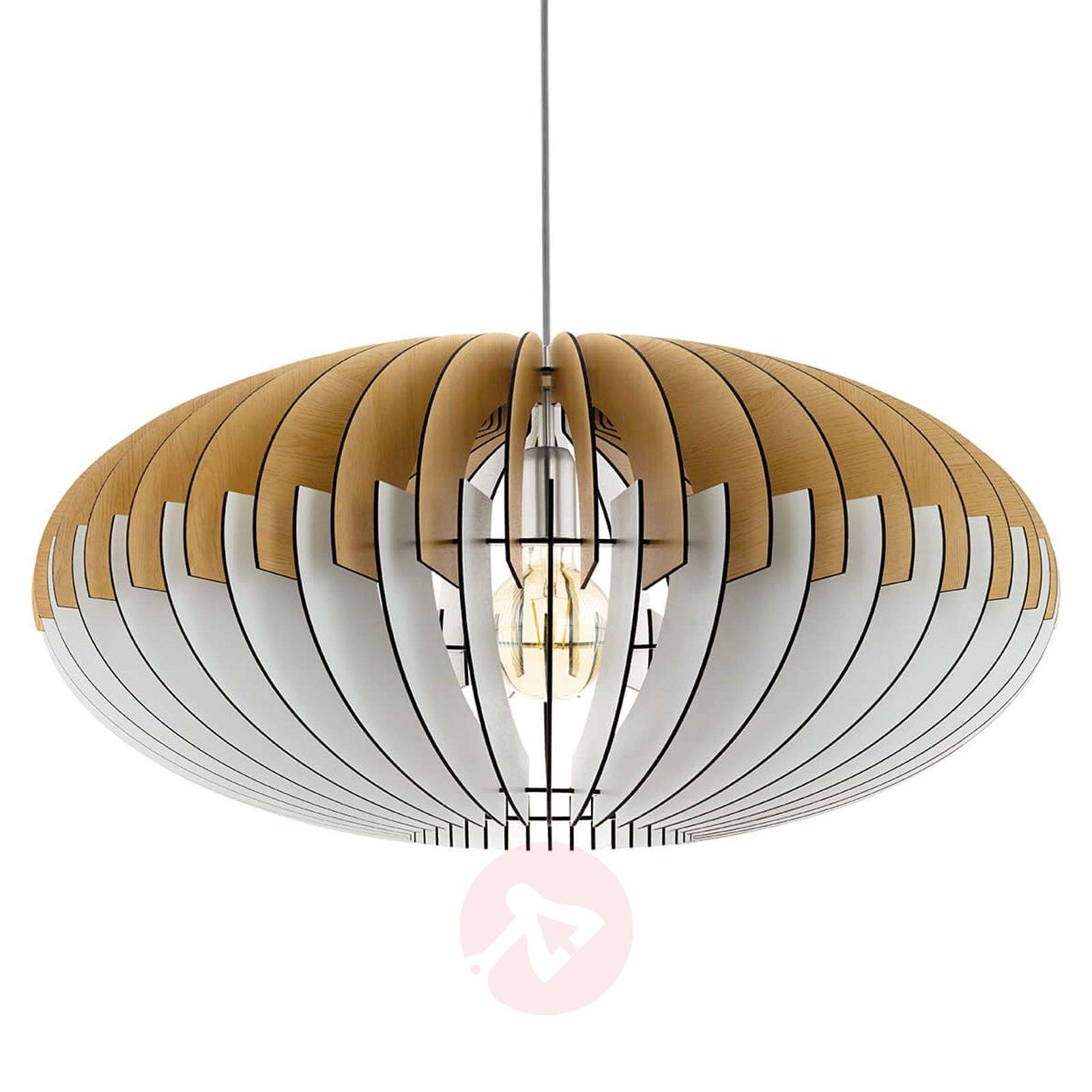 Naturalny wdzięk i nowoczesny styl – lampa wisząca Sotos Duża lampa wisząca Sotos zapewnia ciepłe, naturalne oświetlenie, a jednocześnie może stać się wyznacznikiem stylu w nowocześnie urządzonym wnętrzu. Drewniany klosz lampy wiszącej składa się z ułożonych naprzemiennie, białych i naturalnych lamelek, które połączone są ze sobą w harmonijny sposób. Klosz lamelkowy obejmuje stelaż wsporczy z niklowo-matowej stali, odsuwając go tym samym na drugi plan. Ukłonem w stronę nowoczesności jest odsłonięte w środkowej części klosza źródło światła, które dynamicznie oświetla pomieszczenie przez drewniane lamelki. Wielkość lampy wiszącej predestynuje ją do dużych pomieszczeń z wysokimi sufitami. W mniejszych pomieszczeniach lampa Sotos staje się elementem akcentującym jasne, nowocześnie urządzone wnętrze. Klasa efektywności energetycznej: A++