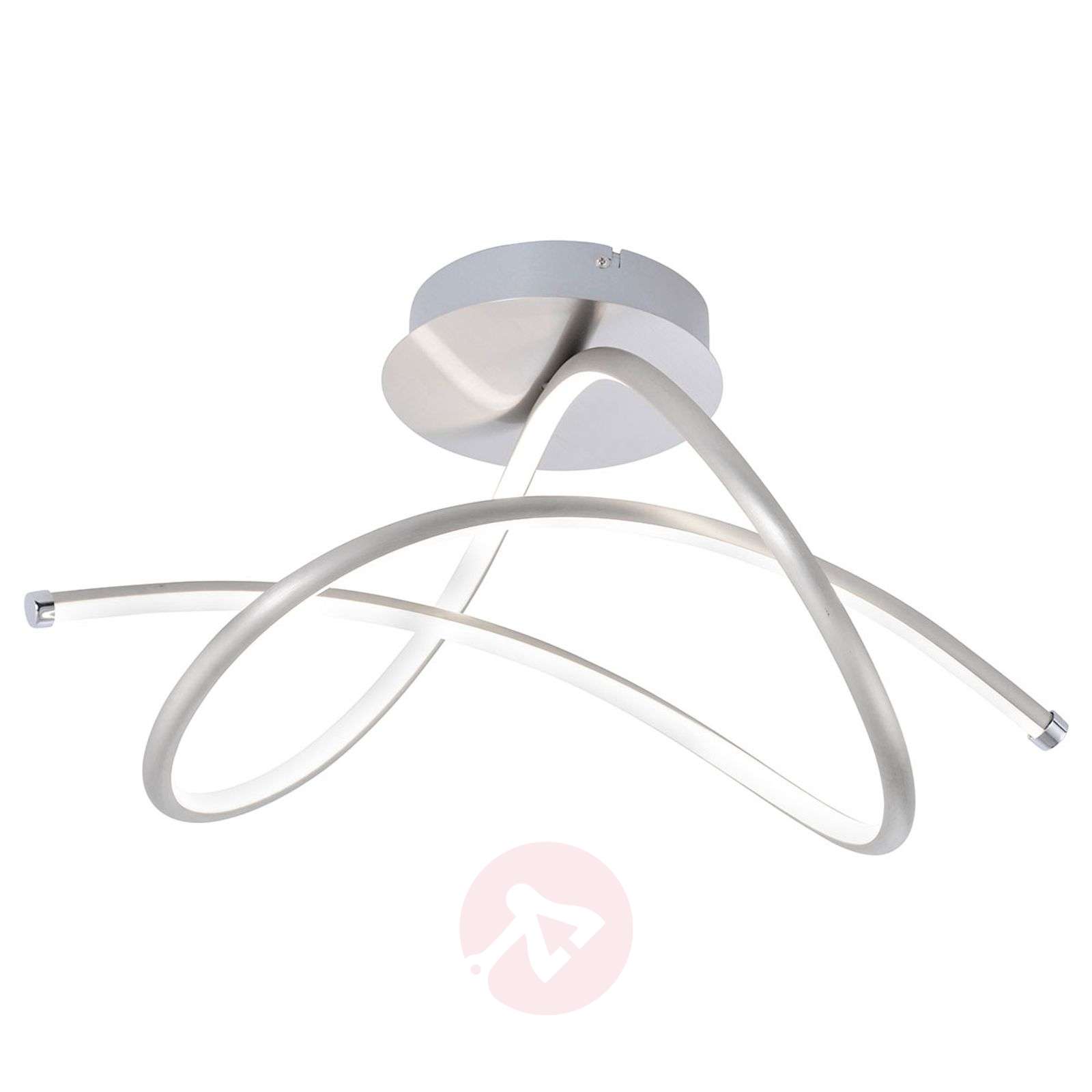 Lampa sufitowa LED Violetta w kolorze stali Błyszcząca, luźno przeplatająca się stal wyposażona w świecące diody LED ukryte za satynowanymi osłonami – niezwykłe wzornictwo tej lampy sufitowej rozluźnia strukturę pomieszczenia i zapewnia przyjemnie jasne światło. Wyszukana forma oprawy pasuje do wielu stylów wyposażenia wnętrz. Subtelne zawieszenie sprawia, że lampa sufitowa wydaje się unosić bezpośrednio pod sufitem. To źródło światła, którego konstrukcja opiera się na dynamicznych łukach i pętlach. Zakrzywiona forma prezentuje się estetycznie z każdej strony. Dzięki niej lampa stanowi wyjątkowy element wyposażenia, który doskonale pasuje do wielu pomieszczeń. Klasa efektywności energetycznej: A+