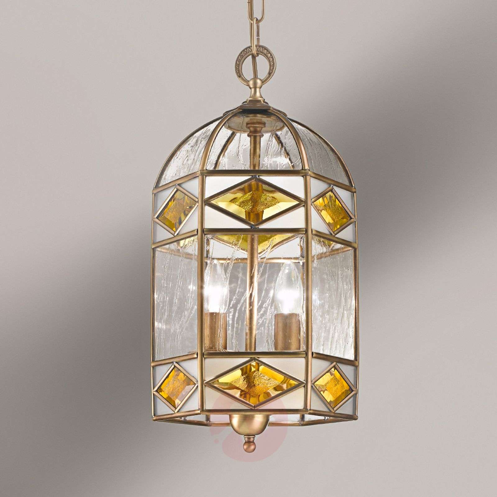 EMILIA – czarująca lampa wisząca ze szkłem katedralnym Wysokiej jakości lampa wisząca EMILIA została ręcznie wykonana we Włoszech i odznacza się piękną, harmonijną formą. Jej klosz tworzą fakturowane, przezroczyste szkło, satynowe szkło oraz elementy w kształcie rombów z żółtego szkła katedralnego. Całość umieszczona jest, jak witrażu, w metalowej ramie i tworzy fascynujący klosz, który stanowi idealną oprawę dla umieszczonych w środku dwóch lampek w kształcie świeczek. Łańcuchowe zawieszenie dodaje lampie uroku z nutką nostalgii. Ekskluzywne produkty tej marki są wykonywane ręcznie wyłącznie we Włoszech ze starannie dobranych, wysokiej jakości materiałów. W ten sposób firma pragnie także nawiązywać do długiej tradycji weneckiej sztuki tworzenia lamp, z pasją i najwyższą starannością tworząc produkty o osobliwych cechach, które świadczą o ich wyjątkowości i oryginalności. Klasa efektywności energetycznej: A++