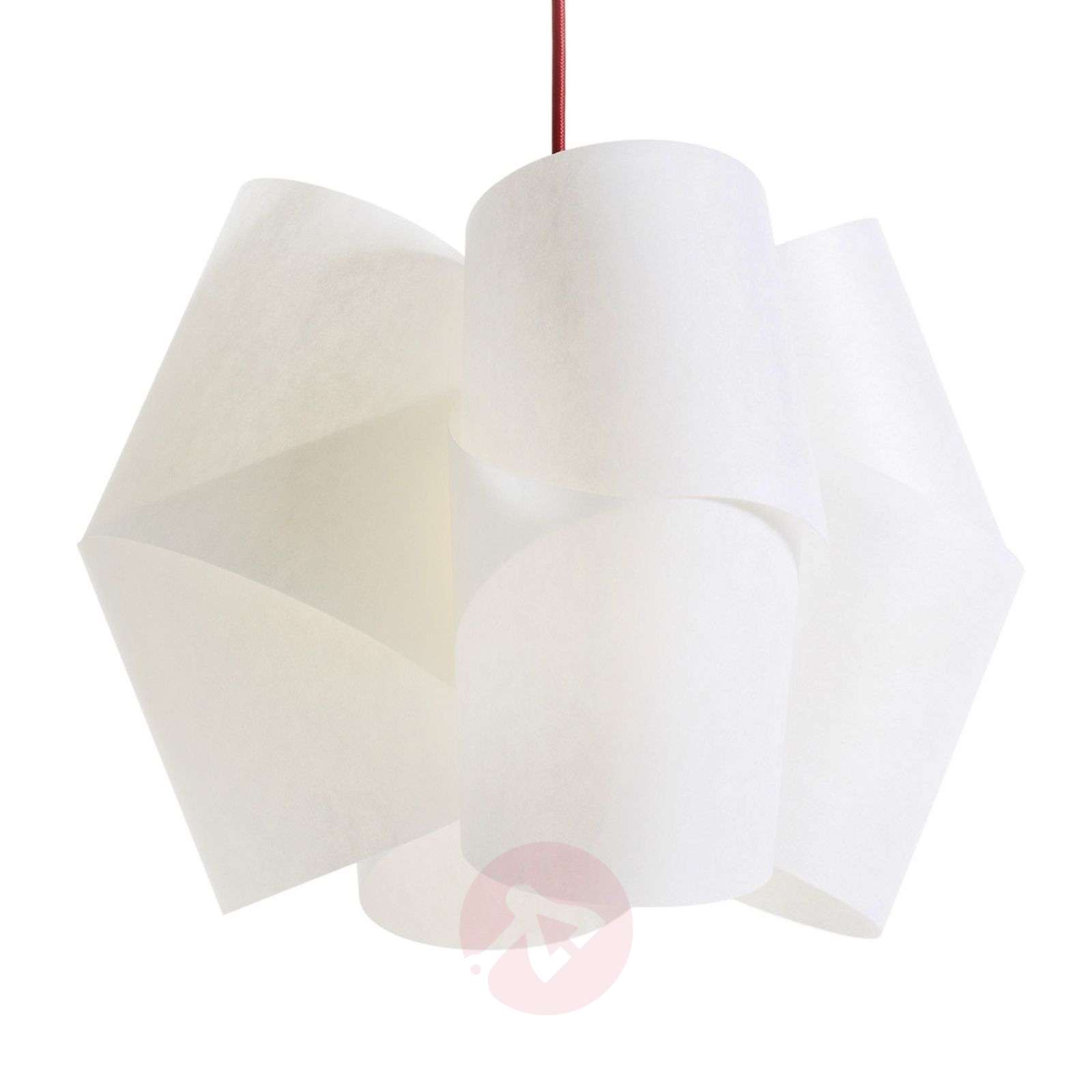 Lampa wisząca JULII przyciąga spojrzenia JULII dzięki wyjątkowemu projektowi wygląda, jak dzieło sztuki: Białe, ponakładane na siebie i nachodzące jeden na drugi elementy z lunopalu zwieszają się z sufitu na kablu w kolorze czerwonym, pokrytym materiałem. Lampa Julii będzie doskonale pasowała do wnętrz urządzonych w stylu nowoczesnym. Klasa efektywności energetycznej: A++