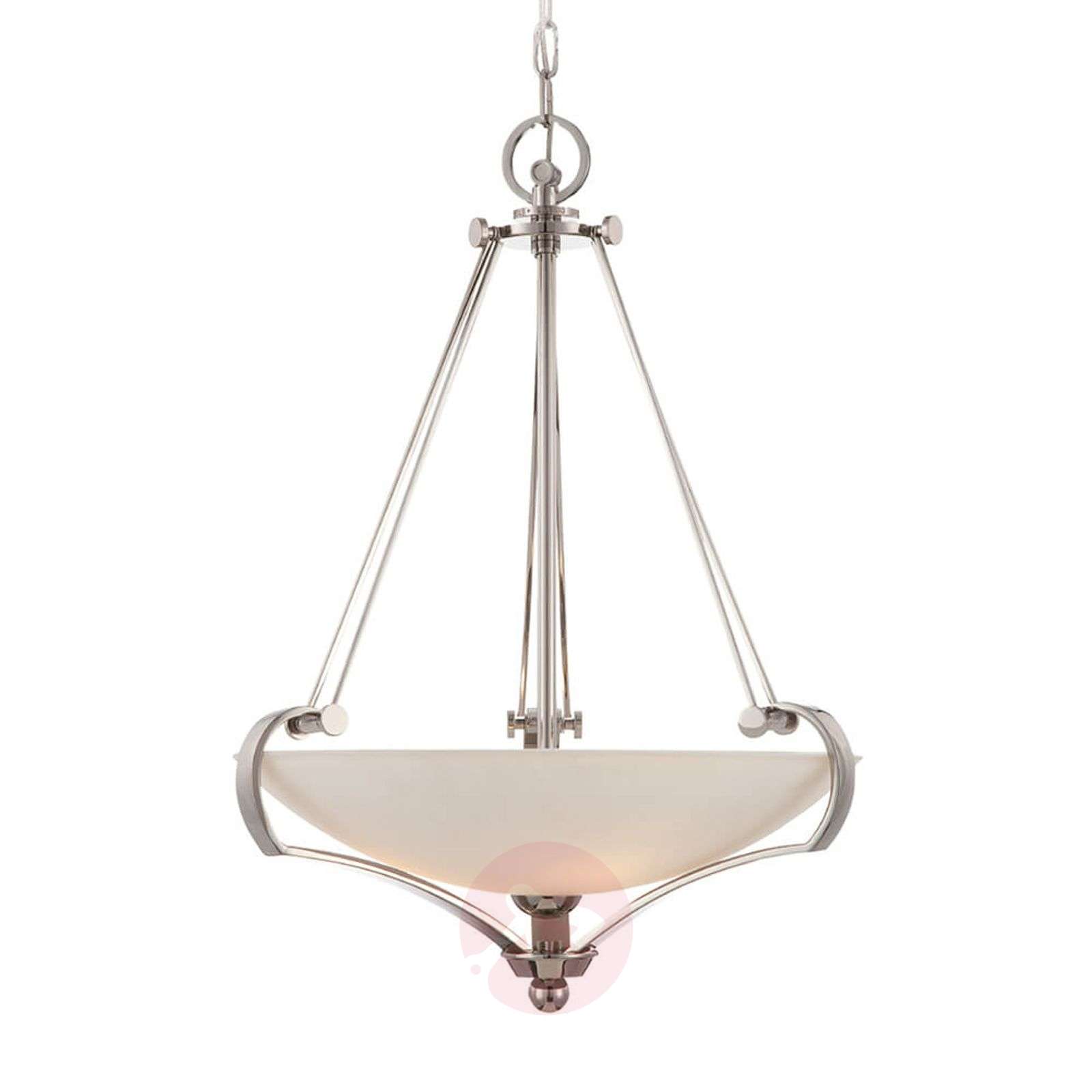 Elegancko wykonana lampa wisząca Sutton Place Sutton Place – bardzo atrakcyjnie zaprojektowana lampa wisząca – nosi tę samą nazwę co dzielnica Nowego Jorku, w której mieszkają głównie zamożni mieszkańcy. Elegancja i luksus zostają odzwierciedlone nie tylko w nazwie, ale również przede wszystkim w designie. Podstawa z małymi łukami ma wykończenie o barwie imperial silver, a szeroki klosz zapewnia równomierne oświetlenie pomieszczenia, przy czym światło wydostaje się na wszystkie strony, a także w kierunku sufitu. Lampa wisząca Sutton Place – hit w ramach ekskluzywnego wnętrzarstwa Klasa efektywności energetycznej: A++