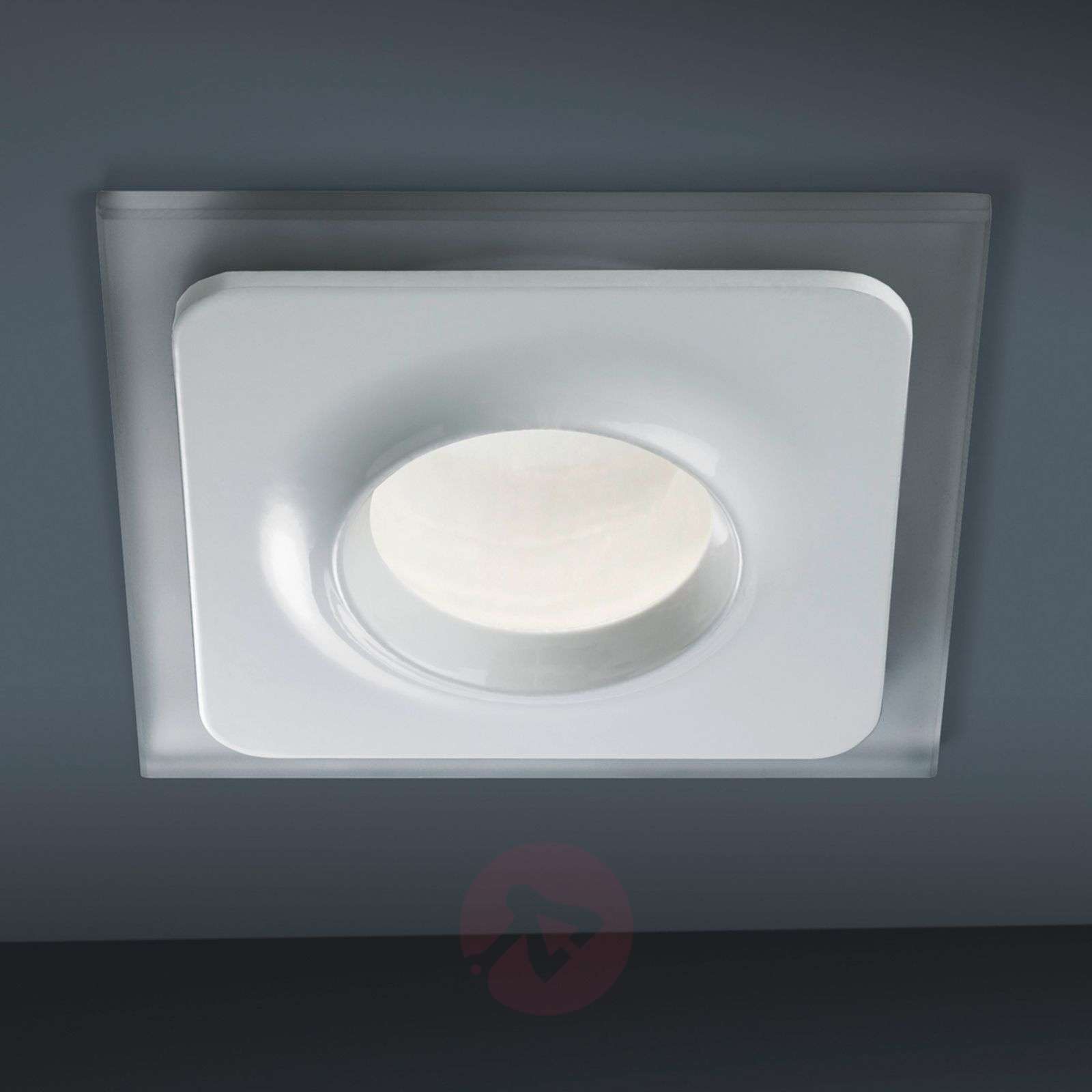 Reflektor wpuszczany FORMULA o niespotykanym projekcie do wilgotnych pomieszczeń Ten reflektor wpuszczany wyprodukowany do użytku w łazienkach, a ponadto, dzięki III klasie ochrony oraz stopniu ochrony IP65, można go tam bez wahania montować. Reflektor składa się z dwóch części. Pierwszą z nich jest kwadratowa płytka szklana przymocowana do sufitu. Jest ona piaskowana dla uzyskania efektu mgły i doskonale harmonizuje z dolną częścią reflektora z lakierowanego na biało aluminium. W dostawie bez transformatora. Klasa efektywności energetycznej: A++
