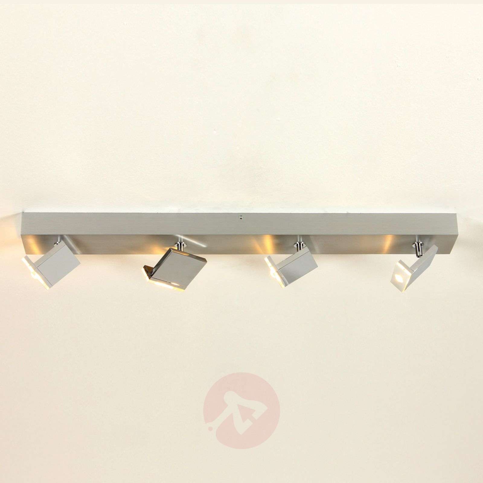 Elle - ściemniany spot sufitowy LED z regulowanymi głowicami Elle to regulowana i ściemniana lampa sufitowa wykonana z oszlifowanego aluminium, która dzięki szykownemu wyglądowi i chromowanym elementom odnajdzie się w każdym nowocześnie urządzonym wnętrzu. Dużą funkcjonalność zapewniają obracane i odchylane, a nawet wyciągane o 11 cm spoty wyposażone każdorazowo w diodę LED, która daje ciepłobiałe światło (2700 K), tworząc w pomieszczeniu przytulną atmosferę. Czteropunktowy spot sufitowy LED Elle znajdzie zastosowanie w salonie, korytarzy i innych wnętrzach takich jak gabinety, korytarze, gdzie zapewni jasne światło. Made in Germany! Wyprodukowane w całości w Niemczech lampy marki BOPP z siedzibą w Odenwald odznaczają się najlepszym wykonaniem, pierwszorzędną jakością i nowoczesną i niezwykle wydajną technologią oświetleniową. Klasa efektywności energetycznej: A+