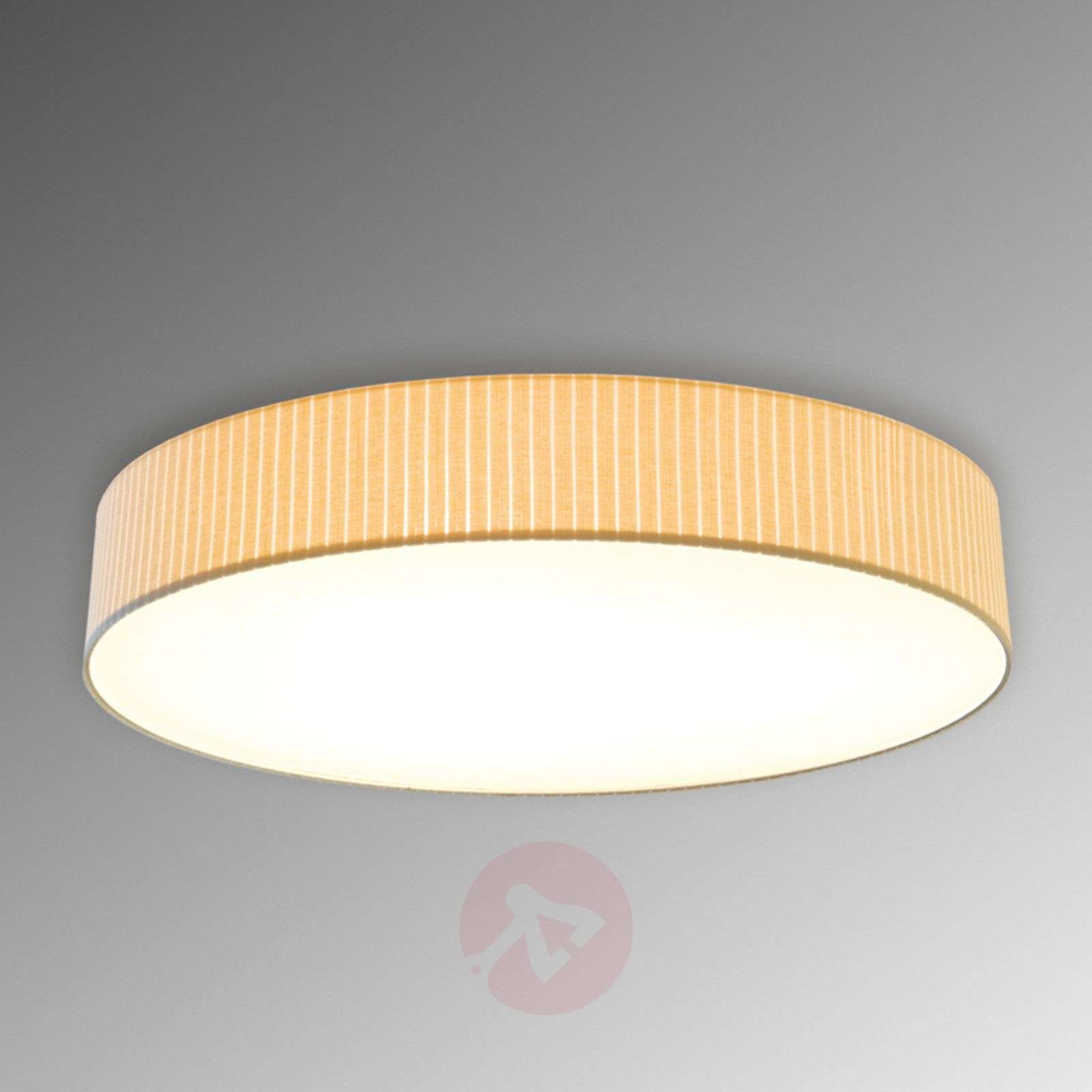 Okrągła lampa sufitowa Onda z plisowanej tkaniny Nowoczesna lampa sufitowa Onda posiada duży abażur o klasycznym okrągłym kształcie. Wysokiej jakości tkanina abażuru została kunsztownie ułożona w fałdy, dlatego posiada drobno pofałdowaną powierzchnię prezentującą się bardzo stylowo. Ciekawy odcień naturalnej bieli nie tylko nadaje lampie elegancki charakter, lecz również tworzy doskonałe i wyjątkowo harmonijne światło. Ze względu na płaską formę lampa sufitowa Onda nie zaburza istniejącego stylu wystroju i doskonale się w niego wpasowuje. Lampa jest dostępna w trzech rozmiarach. Osłona jest utrzymana w kolorze abażuru. Klasa efektywności energetycznej: A++