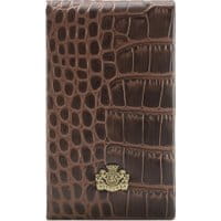 Etui na wizytówki z kolekcji Croco Skórzane etui na wizytówki cechuje klasyczny, a zarazem wyrafinowany styl. Eleganckie tłoczenie i herb WITTCHEN w kolorze starego złota podkreślają szyk tego praktycznego gadżetu. Wizytówki w dedykowanym etui zawsze pozostaną w idealnym porządku. elegancko tłoczonaskóra naturalna, imitująca skórę krokodyla; miejsce na wizytówki z metalowym mechanizmem; widoczne logo - blaszka z herbem WITTCHEN w kolorze złota; wymiary: 10 cm x 6 cm x 1 cm.