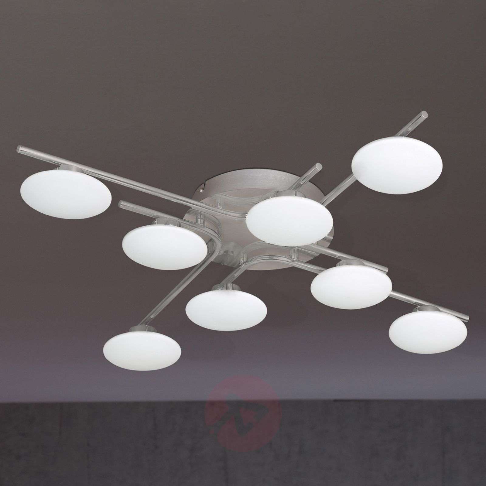Lampa sufitowa Everett z diodami LED o barwie ciepłej bieli Płaskie białe klosze w lampie sufitowej LED emitują równomierne światło i ujmują nowoczesną, minimalistyczną stylistyką. Matowa podstawa metalowa stanowi harmonijne dopełnienie całości. To godna polecenia lampa nie tylko do salonu, ale i do korytarza czy sypialni. Wyposażona w diody LED o dużej jasności zużywa bardzo mało energii. Klasa efektywności energetycznej: A+