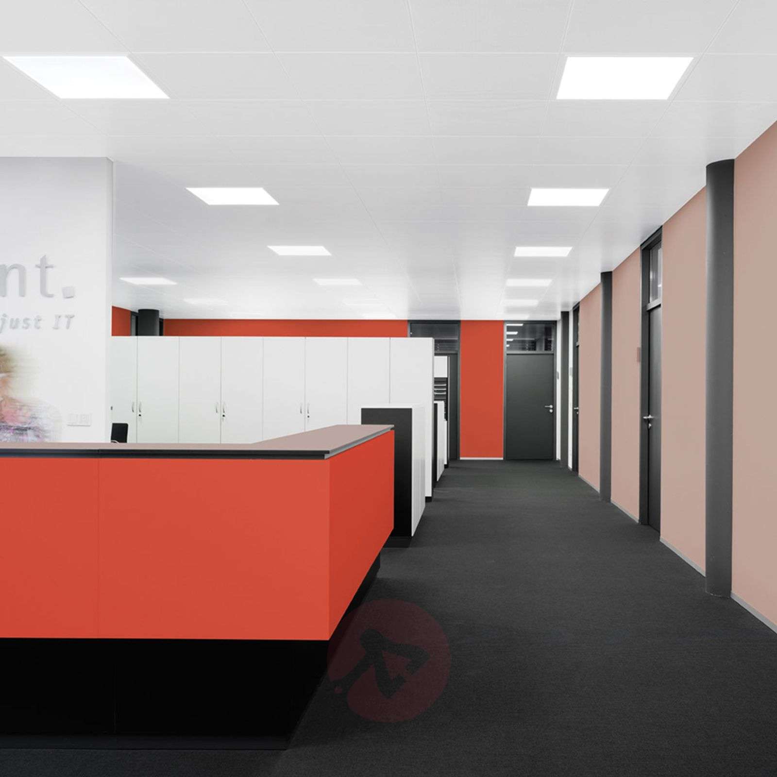 Oprawa wkładana LED FLSB625EL odpowiednia do sufitów rastrowych i kasetonowych Oprawa wkładana LED FLSB625EL optymalnie oświetla na przykład pomieszczenia biurowe. To mocne źródło światła można jednak również stosować w sklepach i prywatnych mieszkaniach. Lampa jest wyposażona w nowoczesną technologię LED Sidelight oraz kierujący światło układ optyczny z tworzywa sztucznego, który zapewnia równomierną luminancję na całej powierzchni wylotu światła. Dostawa obejmuje konwerter elektroniczny. Wskazówka: odpowiednią ramkę montażową można zamówić osobno w dziale „Akcesoria dodatkowe”. Dane techniczne - UGR - stopień ochrony IP43 (dla powierzchni wylotu światła w przypadku montażu w zamkniętych sufitach) - układ optyczny: bezpośrednie oświetlenie symetryczne - kąt wiązki światła: 2 x 57° Klasa efektywności energetycznej: A+