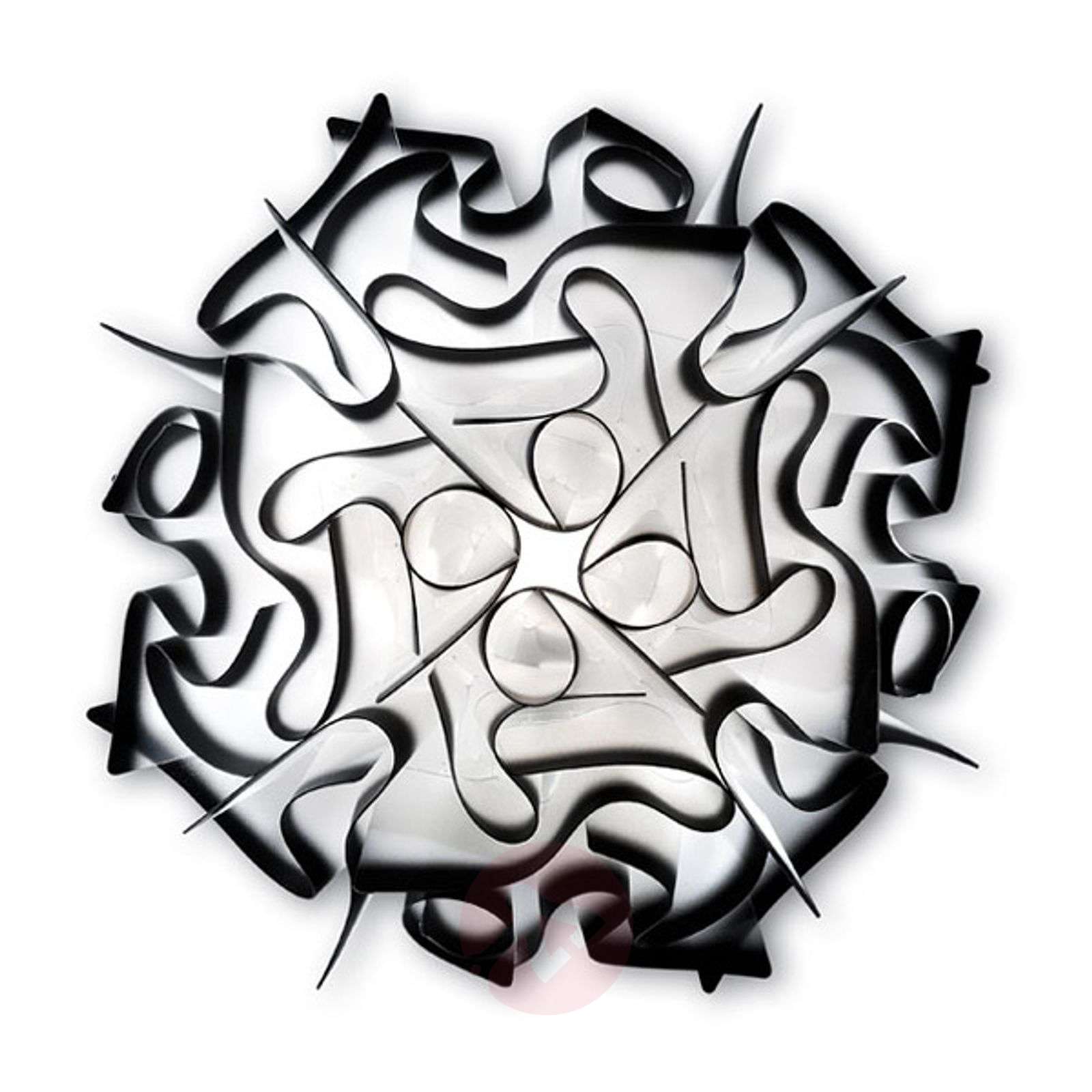 Czarująca ozdoba ściany - lampa VELI przyciąga spojrzenia i zapewnia wspaniałe efekty świetlne Lampa VELI to jedyna w swoim rodzaju kunsztowna oprawa ścienna. Z powodzeniem łączy luksusowy wygląd z nowoczesnym designem, gdyż poszczególne elementy przypominają brzegi falbany eleganckiej, jedwabnej sukienki, którą można spotkać tylko na balach lub podczas hucznych przyjęć. Do stworzenia lampy posłużył bardzo nowoczesny materiał Opalflex®. Efekty, jakie zapewnia lampa, nie mogłyby być piękniejsze. Lampa idealnie nadaje się dla osób, które do purystycznego wnętrza chcą wprowadzić nieco luksusu. Oprócz uniwersalnego białego koloru lampa dostępna jest również w wariantach ze śliwkowym lub antracytowym brzegiem. Niezwykła forma lampy VELI sprawia, że stanowić będzie doskonałą ozdobę sufitu bądź ściany. Atrakcyjna, nowoczesna i innowacyjna forma przyciąga spojrzenia, gdyż zapewnia nastrojowe oświetlenie. Lampę można umieścić na suficie lub ścianie za pomocą praktycznego systemu z magnesem. Dzięki niemu klosz lampy można łatwo zdjąć Ułatwia to nie tylko wymianę żarówki, ale również czyszczenie lampy. Wizjonerskie lampy tworzone przez designerów we Włoszech - Slamp Włoska kuźnia designerów Slamp z siedzibą w Rzymie została założona na początku lat 90. XX wieku. przez Roberto Zilianiego. Ziliani już wcześniej działał twórczo zanim odkrył swoją pasję i możliwości, jaki daje światło. Spełniające najwyższe standardy materiały, wykonanie i jakość Marka Slamp kładzie szczególny nacisk na tworzenie nowych materiałów. Oprócz naturalnych i tradycyjnych surowców takich jak skóra, miedź, kryształ czy stal szlachetna firma Slamp wykorzystuje również własne opatentowane materiały jak Cristalflex®, Opalflex® i Lentiflex®. Dzięki nim możliwe jest stworzenie wyjątkowych efektów świetlnych. Na przykład materiał Lentiflex® służy jako woda, która w zależności od kąta patrzenia zmienia kolor. To właśnie własne materiały marki Slamp oraz powstałe z nich lampy są silnymi atutami firmy. Należą do nich również między innymi spory poziom innowacji, kreatywności oraz oryginalności, a także doskonałe wyczucie działania światła. Klasa efektywności energetycznej: A++