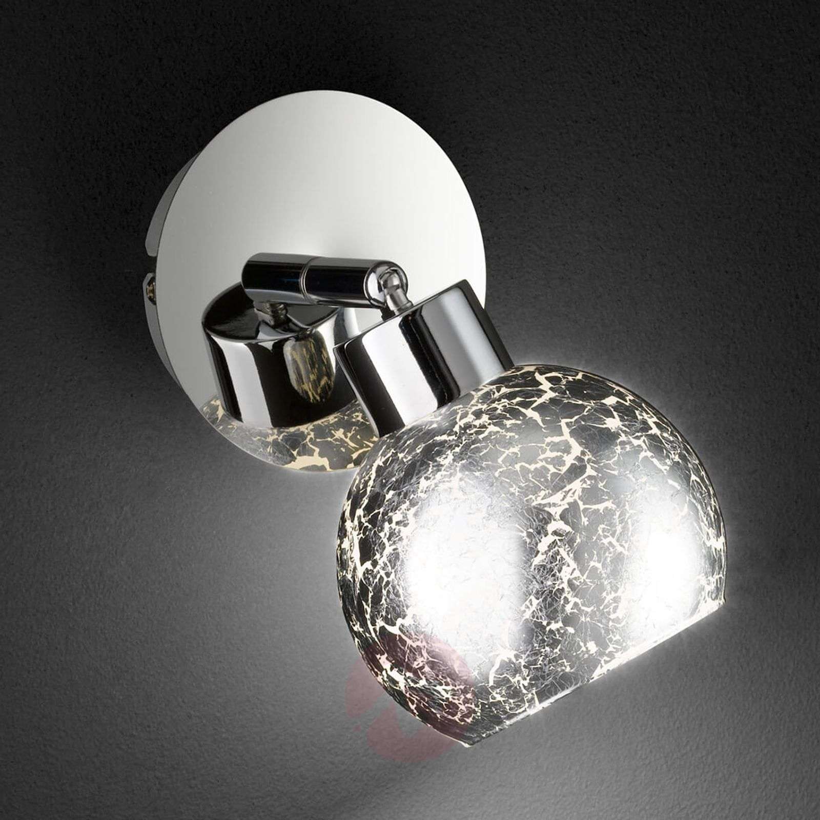Fara - efektowna lampa ścienna z kulistym kloszem szklanym Kulisty klosz lampy ściennej Fara jest wykonany ze szkła i pokryty srebrną folią, która nadaje całości stylu i dekoracyjnego charakteru. Podstawa jest chromowana na połysk i tworzy z kloszem harmonijną całość. Regulowany klosz można ustawiać w różnych kierunkach, dopasowując oświetlenie do potrzeb. Klasa efektywności energetycznej: A++