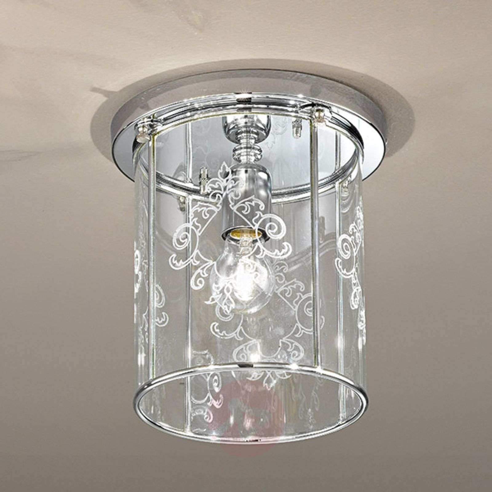 GRETA – lampa sufitowa z pięknie dekorowanym kloszem ze szkła kryształowego Wysokiej jakości lampa sufitowa GRETA została ręcznie wykonana we Włoszech i odznacza się piękną, harmonijną formą. Zamocowanie sufitowe oraz obramowanie szkła są wykonane z chromowanego metalu. Przezroczysty klosz ze szkła kryształowego został ozdobiony pięknym, kwiatowym motywem, który wygrawerowano na wszystkich bokach. Ekskluzywne produkty tej marki są wykonywane ręcznie wyłącznie we Włoszech ze starannie dobranych, wysokiej jakości materiałów. W ten sposób firma pragnie także nawiązywać do długiej tradycji weneckiej sztuki tworzenia lamp, z pasją i najwyższą starannością tworząc produkty o osobliwych cechach, które świadczą o ich wyjątkowości i oryginalności. Klasa efektywności energetycznej: A++
