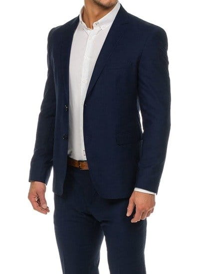 Optycznie wysmuklają sylwetkę, marynarka ma brustaszę, modnie skrojone klapy i liczne kieszenie. Atramentowy garnitur męski slim fit sprawdzi się przy wszystkich ważnych okazjach, będzie idealny do pracy i na spotkanie biznesowe.Garnitur męski w kolorze atramentowym Marynarka jednorzędowa, zapinana na dwa guziki Model slim fit Imitacja butonierki Brustasza na piersi Imitacja kieszonki biletowej Dwie kieszenie zewnętrzne, proste, cięte z patkami Dwie kieszenie wewnętrzne Ozdobne guziki na zakończeniu rękawów Dwa szlice z tyłu Spodnie typu Regular Zaprasowany kant Pas z guzikiem i zamkiem, dodatkowo zapinane na haftkę i guzik Dwie kieszenie z przodu i dwie z tyłu Tylne kieszenie zapinane na guziki Sprawdzi się w stylizacjach eleganckich oraz casualowych Okazja: Imprezy okolicznościowe, spotkania służbowe Model (182 cm, 82 kg) ma na sobie rozmiar XL Materiał: 75% Poliester, 25% Wiskoza Uwaga! Wybrany rozmiar dotyczy kompletu