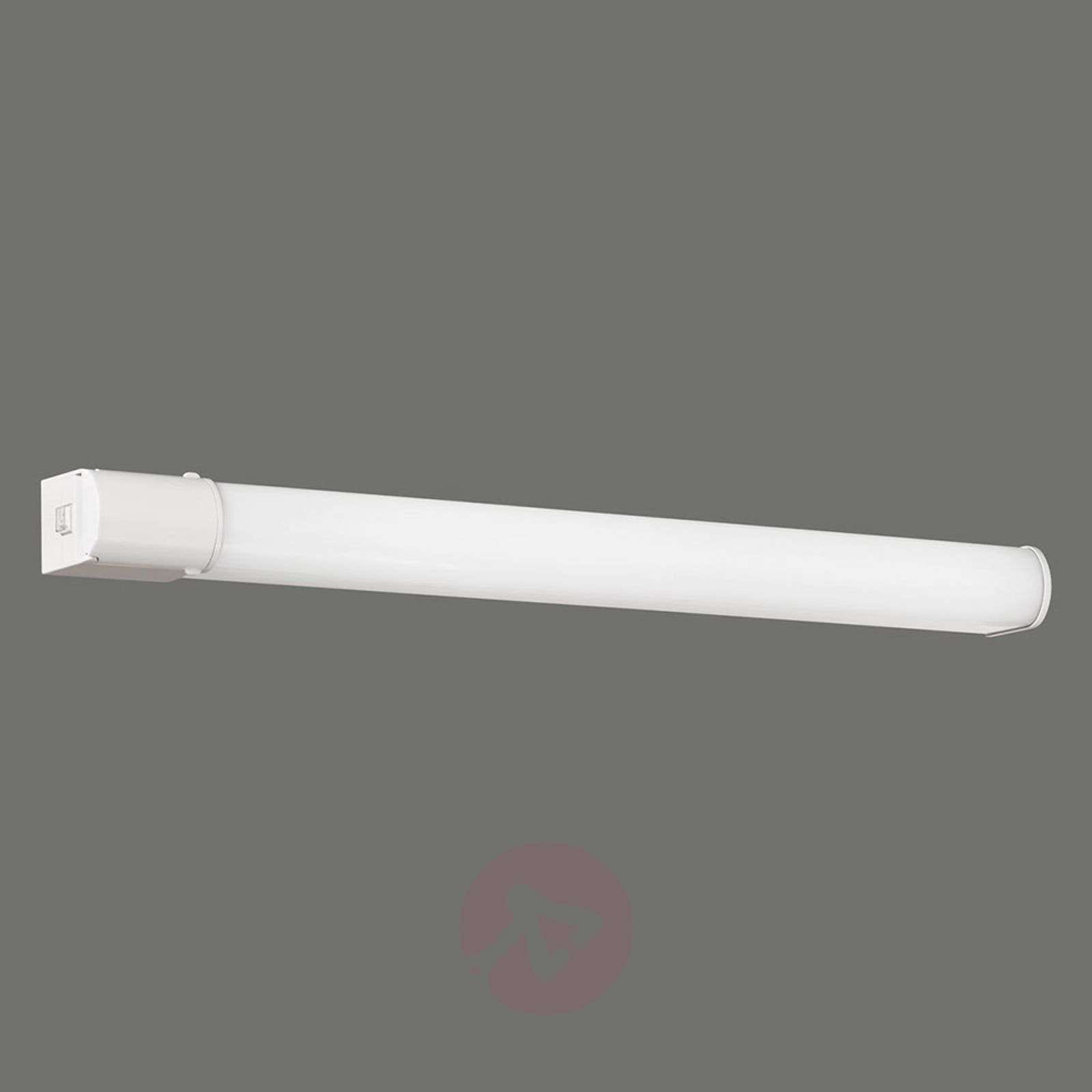 Proste oświetlenie lustra LED Garona z gniazdem wtykowym Ten kinkiet łazienkowy LED nad lustro Garona zapewnia jasne światło o barwie uniwersalnej bieli oraz oferuje dodatkowo możliwość podłączenia suszarki do włosów, golarki, szczoteczki do zębów i tym podobnych urządzeń. Lampa ta ma klasyczny kształt świetlówki i jest wyposażona w mocne diody LED, emitują mocny strumień świetlny przy niskim zużyciu energii. Przełącznik znajduje się obok gniazda wtykowego, które jest chronione przez pokrywę, co zapobiega dostaniu się wilgoci do wewnątrz. Klasa efektywności energetycznej: A+
