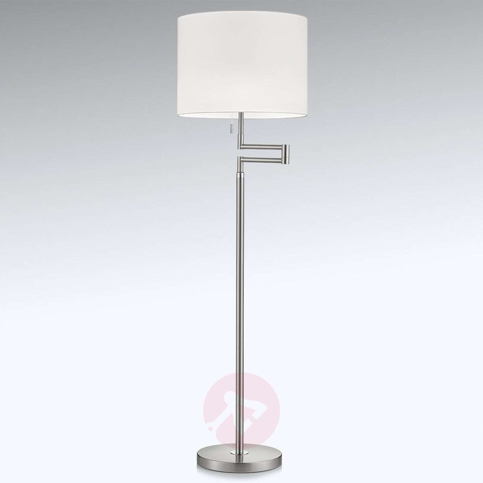 Lampa stojąca LED Lilian z możliwością dowolnego ustawiania, ściemniana, matowy nikiel i chrom Lampa stojąca LED Lilian przyciąga spojrzenia swoim dość chłodnym i dyskretnym wyglądem z przewagą elementów metalowych. Dzieje się tak, gdy jest umieszczona obok fotela do czytania czy też wykorzystywana jako nastrojowe dodatkowe oświetlenie w salonie. Matowe niklowanie i chromowane elementy, składające się na design tej lampy, doskonale pasują do klosza z tkaniny chintz w kolorze białym. Ta ściemniana lampa stojąca jest również zaawansowana technicznie. Wszakże technologia LED zapewnia widoczną oszczędność energii, która czyni tę oprawę tak nowoczesną. W stopie tej lampy stojącej wbudowano ściemniacz, dzięki czemu uzyskanie pożądanych efektów świetlnych jest wręcz dziecinnie proste. Indywidualnie regulowana, giętka lampa stojąca Lilian może być również obsługiwana szybko, z wykorzystaniem przełącznika sznurkowego. Klasa efektywności energetycznej: A+