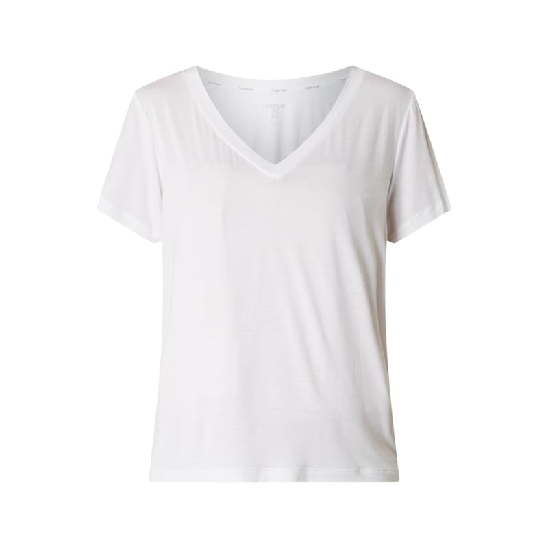 Góra od piżamy damska Calvin Klein Sleepwear, Mieszanka modalu i elastanu, Luźny krój , Dekolt w serek , Długość tyłu w rozmiarze S: 57 cm
